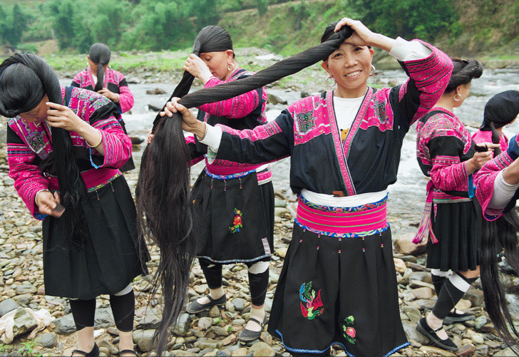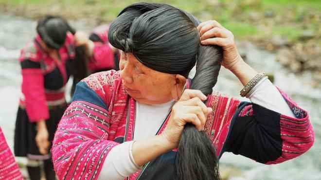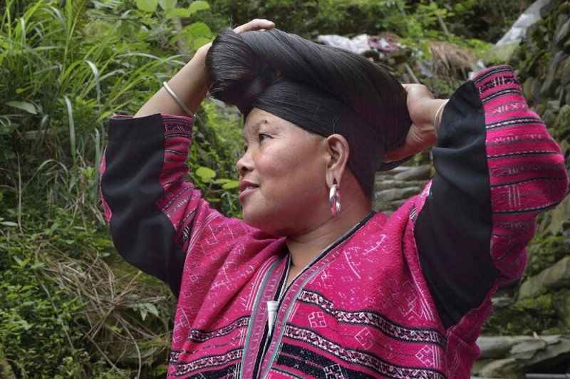 Kızıl Yao kadının koyu renkli saçlarının güzelliğini fark etmemek neredeyse imkansız. Bu güzelliğin sırrını, saçlarını pirinç suyuyla yıkamakta yattığını söylüyorlar.