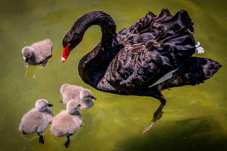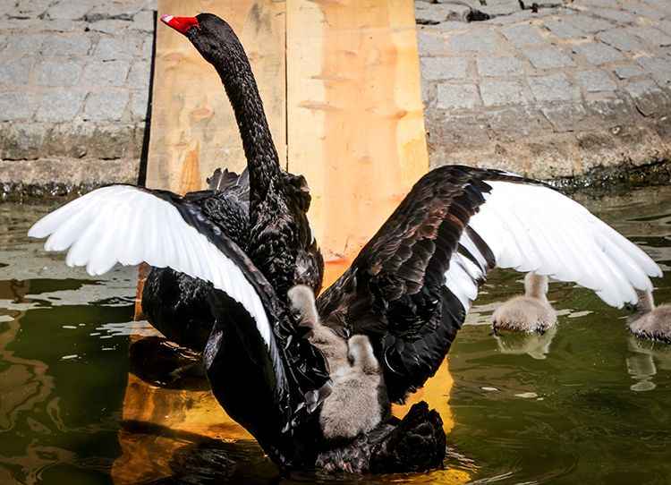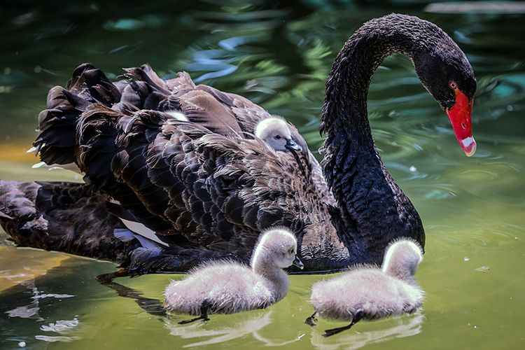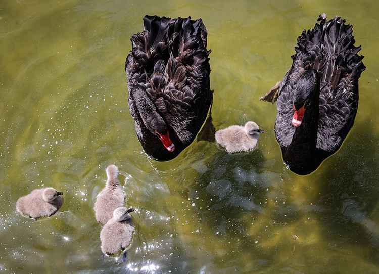 Çankaya'daki parkın simgelerinden 2 yetişkin siyah kuğuya, iki gün önce yumurtadan çıkan 4 yavru kuğu daha eklendi.