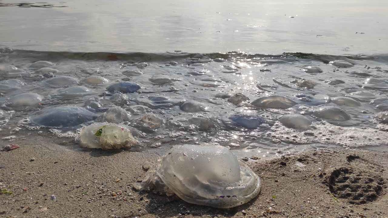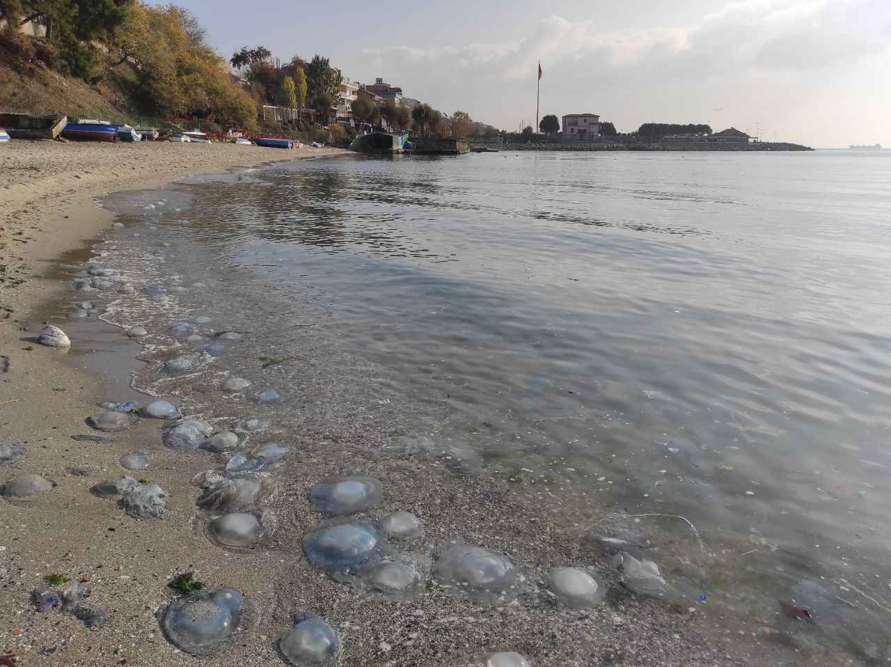 Akıntı sistemiyle birlikte denizanaları kıyıya vuruyor. Bu tür, normalde Marmara Denizi'nde var ama genellikle açıkta bulunur. Kıyısal alana çok nadir gelirler. Denizanalarının yığılma hareketi, akıntı ve su. Suyun dalga oluşturmasıyla ancak bunlar kıyıya vurabilirler."