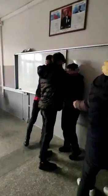 Bir öğrenci ise N.G.'nin başını ard arda beyaz tahtaya vurdu.
