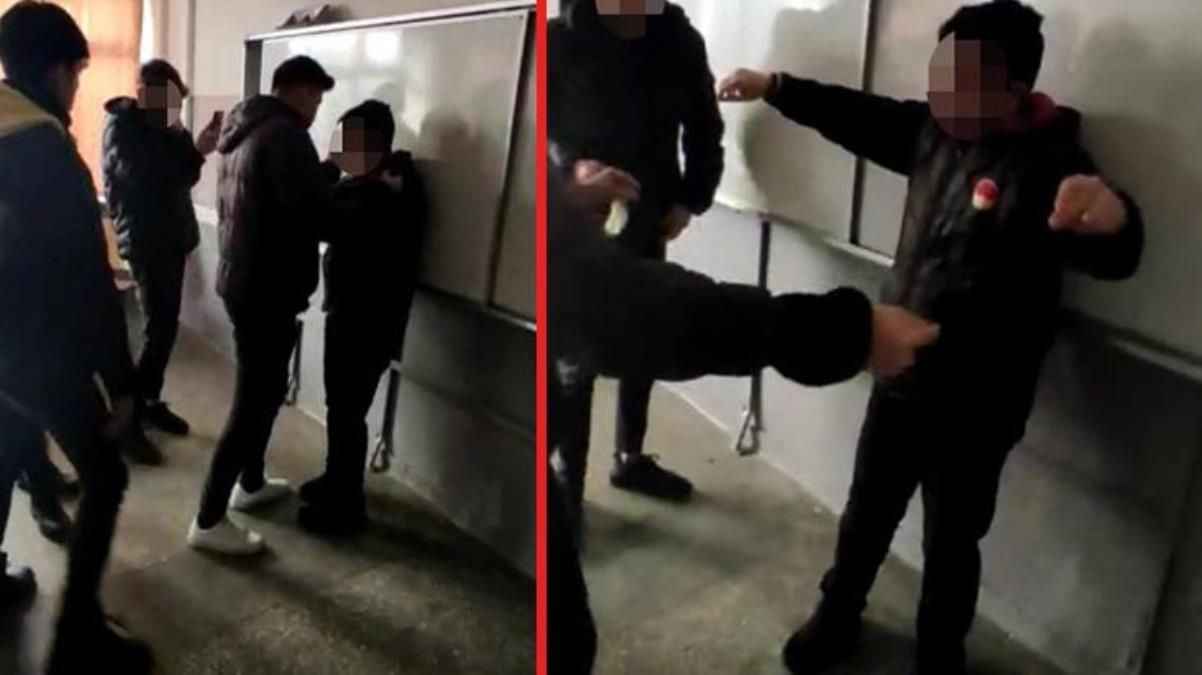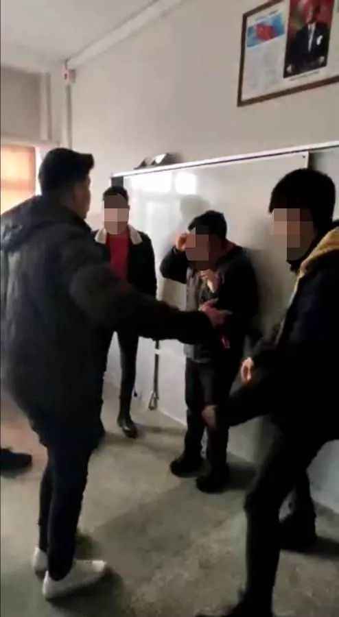 Lisede çekilen görüntülerde 11'inci sınıf öğrencisi N.G. sınıftaki arkadaşları tarafından darbedildi.