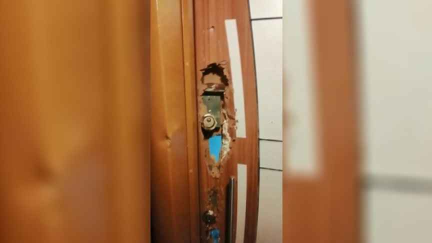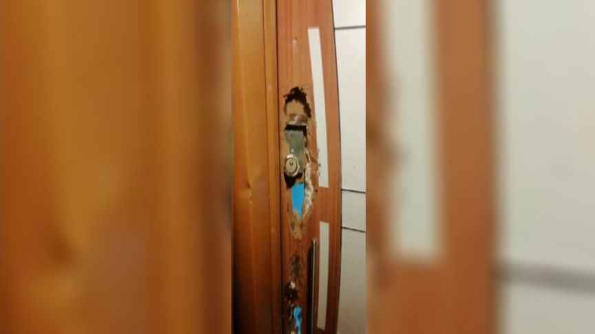 Polisler Yusuf Bazencir'i baltayla kapıyı kırmaya çalışırken gözaltına aldı.