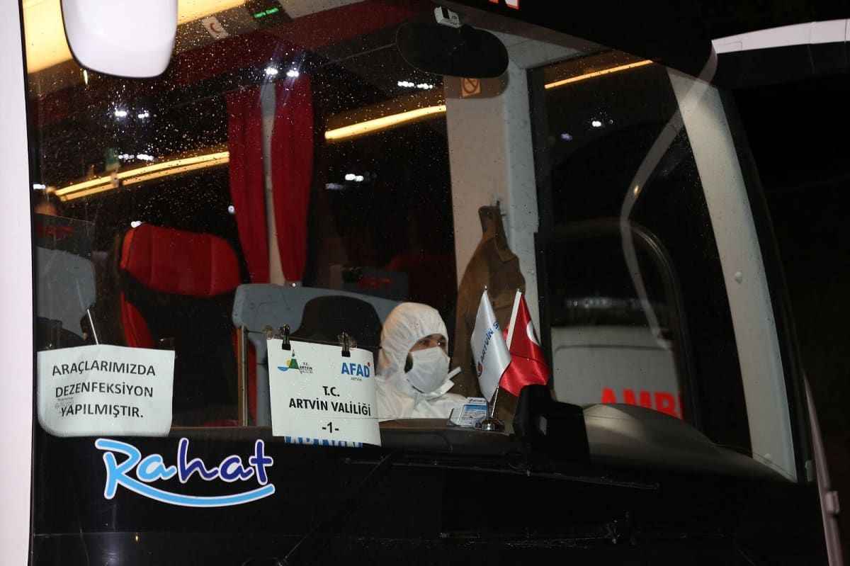 Cumhurbaşkanı Recep Tayyip Erdoğan'ın talimatı, Cumhurbaşkanı Yardımcısı Fuat Oktay'ın koordinasyonu ve Dışişleri Bakanlığının çalışmasıyla gerçekleştirilen tahliye kapsamında Türk Hava Yolları'na ait uçakla yurda getirilen 5'i çocuk 270 kişi Trabzon Havalimanı'ndaki işlemlerin ardından polis eskortu eşliğinde kara yolu ile Artvin'e geldi.