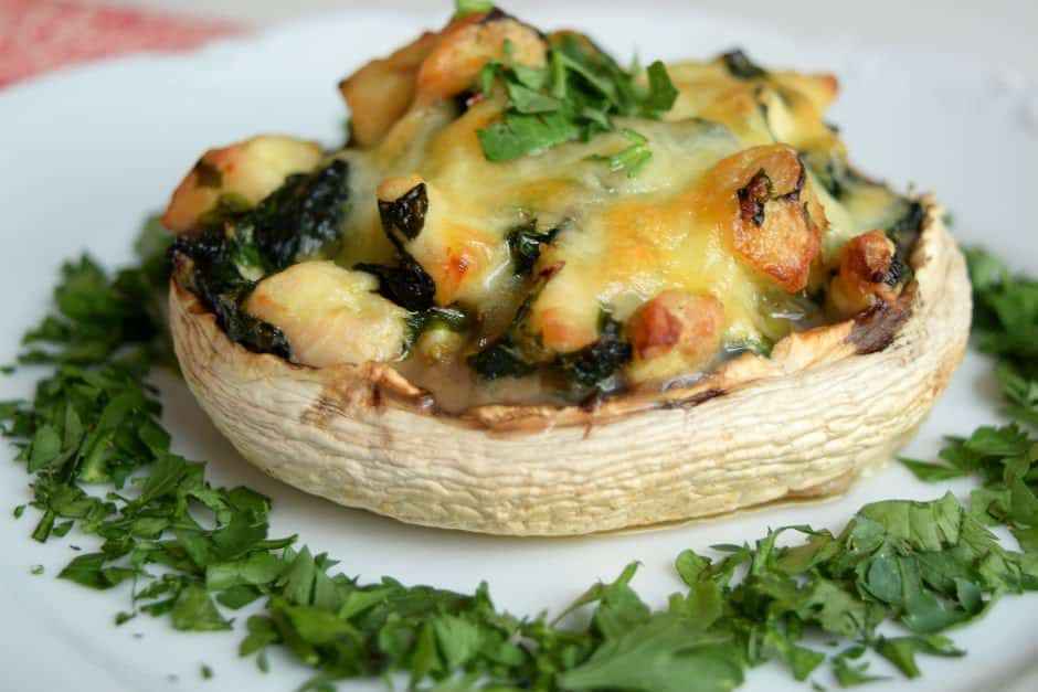 Mantarı sebzelerle doldurmakla yetinemeyecek olanları, içinde mutlaka et görmek isteyenleri de unutacak değildik. Onlar için de mantarları tavukla, ıspanakla, kaşar peyniriyle bir araya getirdik.