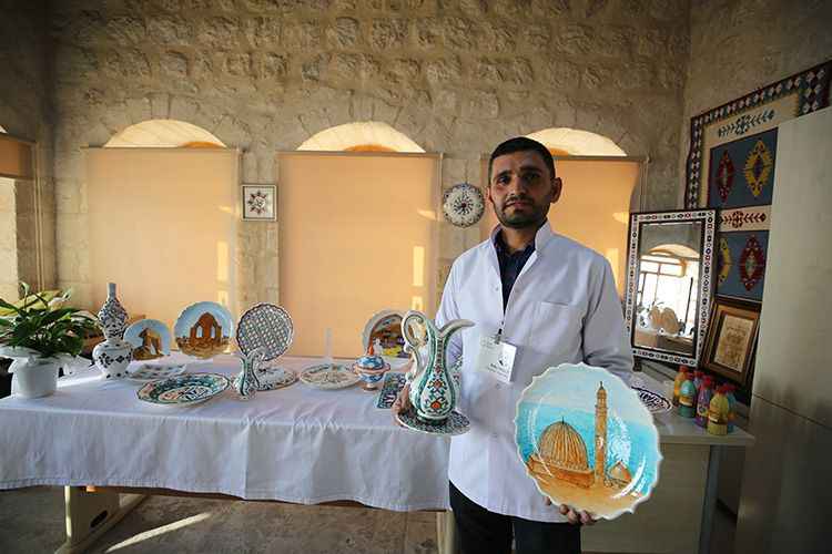 Çini sanatının sabır istediğini kaydeden Yıldız, daha çok taş ve kilim motifleri kullandıklarını dile getirdi.