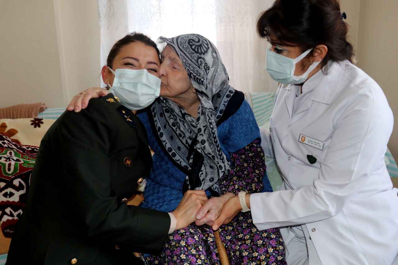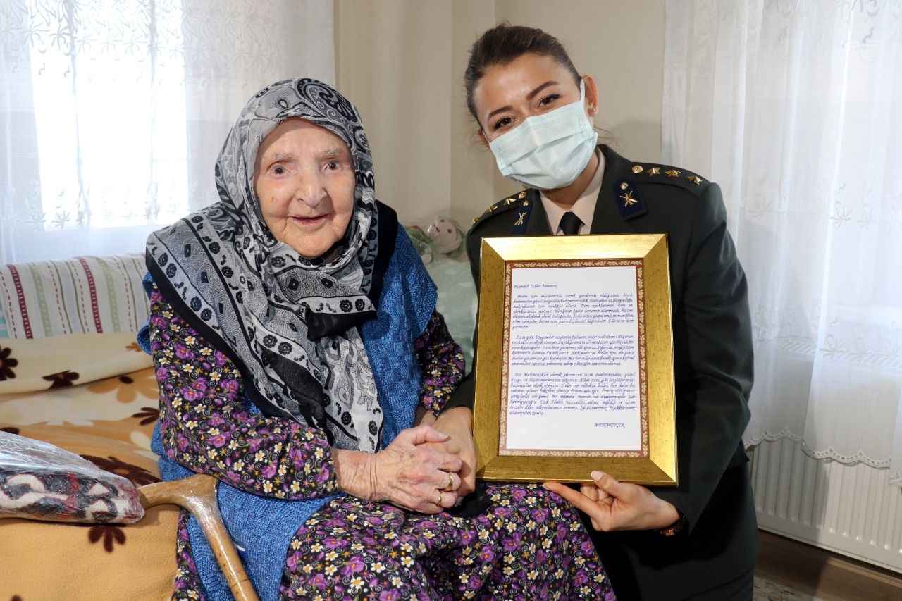 Topçu Yüzbaşı Özlem Yılmaz ve Tabip Albay Banu Öztürk'e sarılan, ellerini bırakmayan Zeliha nine, sınır hattında vatan bekçiliği yapan Mehmetçiklerin kaleme aldığı mektubu öperek aldı. Astsubay Kıdemli Başçavuş İlker Topsakal'dan aldığı hediyeler karşısında duygulanan Barlas, evlatlarına selamlarını iletti.