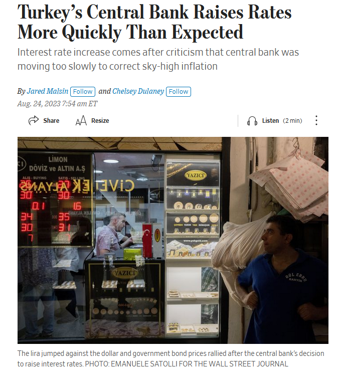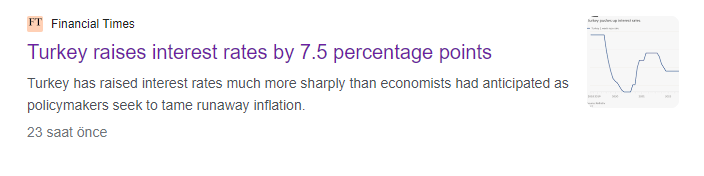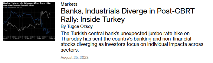 Haberde “TCMB faizleri beklenenden fazla artırarak para politikası yoluyla enflasyonu düşürme yönündeki yeni taahhüdünü yerine getirmeye istekli olduğunun sinyalini verdi” ifadelerine yer verildi.