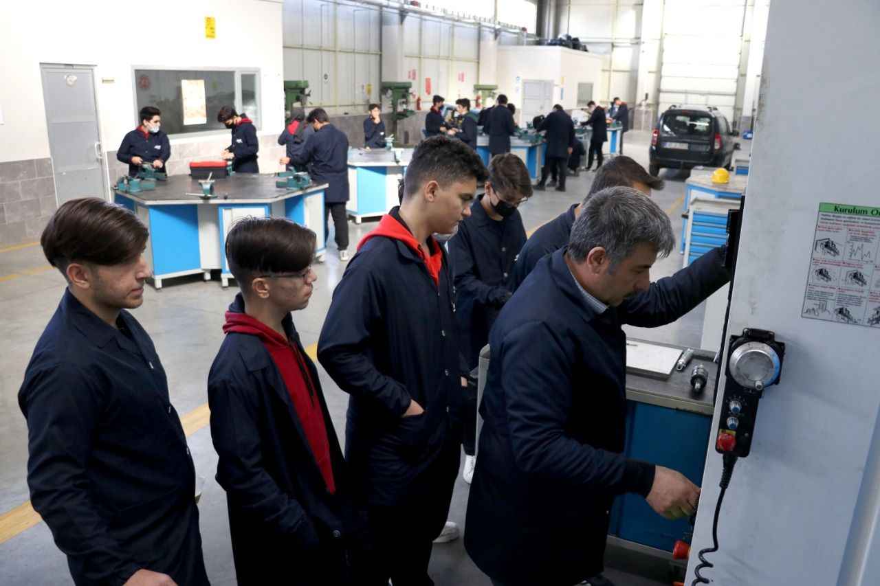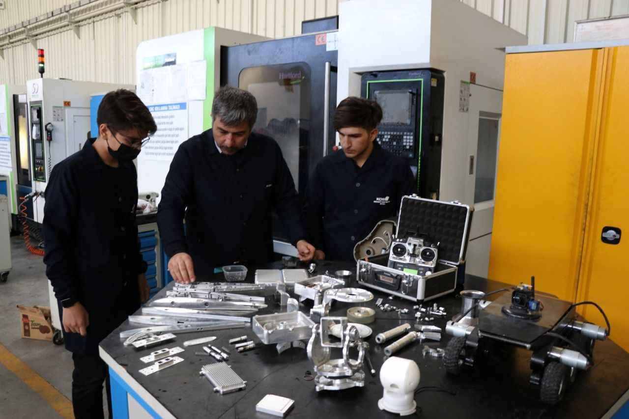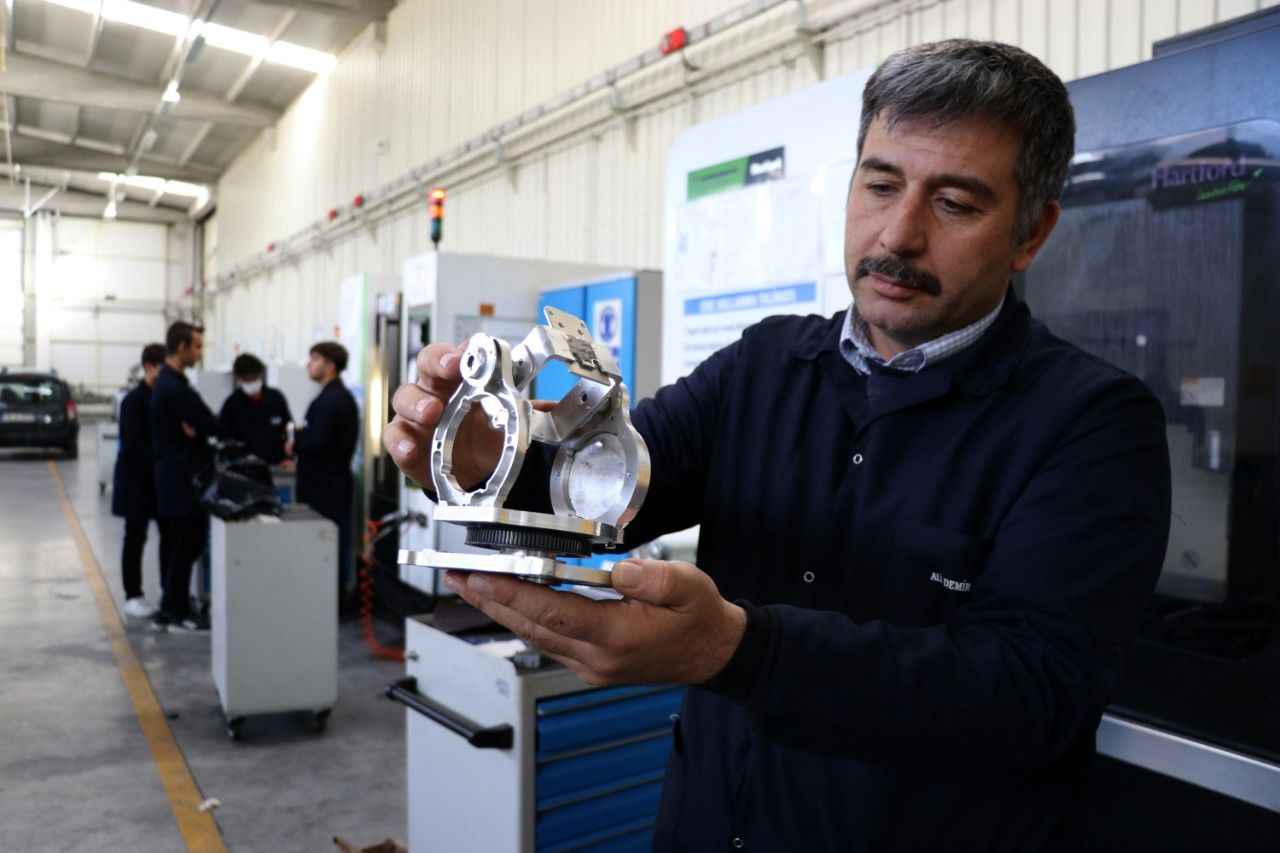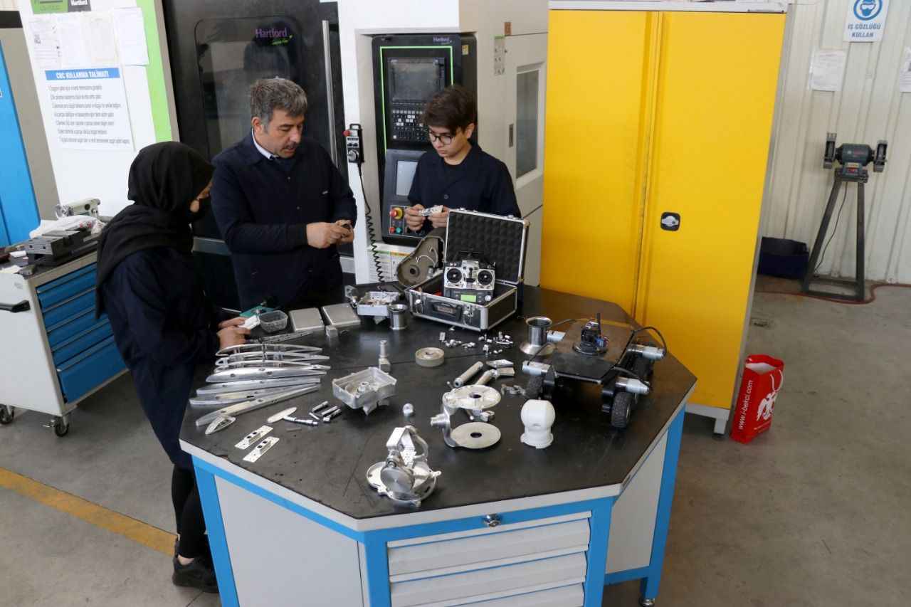 Savunma mekanik sistemleri atölyesinin kurucu şefi ve makine alan öğretmeni Ali Demir de CNC makinelerde işleyerek irili ufaklı 250 çeşit mekanik parça ürettiklerini aktardı.