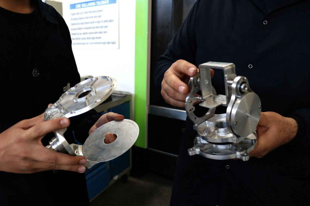 Üretmeleri gereken parçalardan bazılarının hazır tasarım olarak geldiğini belirten Demir, bazı parçaları da ihtiyaca göre çizimleriyle tasarlayıp onayını aldıktan sonra üretip testlere tabi tutarak montajı yapılmak üzere gönderdiklerini ifade etti.