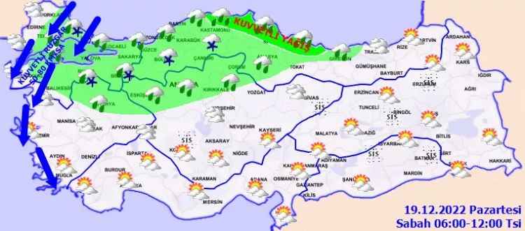 Hava sıcaklığının kuzey, iç ve batı kesimlerde 6-12 derece azalarak mevsim normallerinin altına inmesi, çarşamba günü kuzeybatı kesimlerden başlayarak tekrar artması bekleniyor.