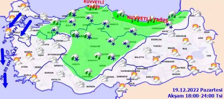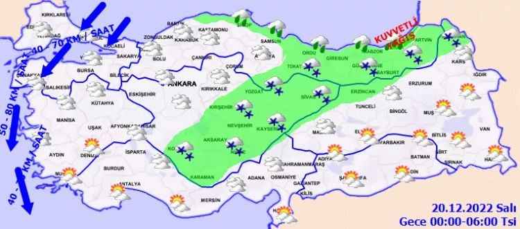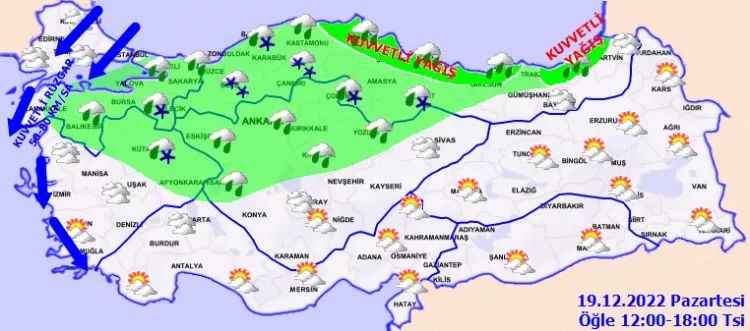 19 Aralık Pazartesi günü Karadeniz üzerinden gelen soğuk havanın etkisiyle hava sıcaklıklarının Ankara’da 6-12 derece azalarak mevsim normallerinin altına inmesi beklendiğinden, ulaşımda aksamalar ve don tehlikesi gibi olumsuzluklara karşı dikkatli ve tedbirli olunmalıdır.