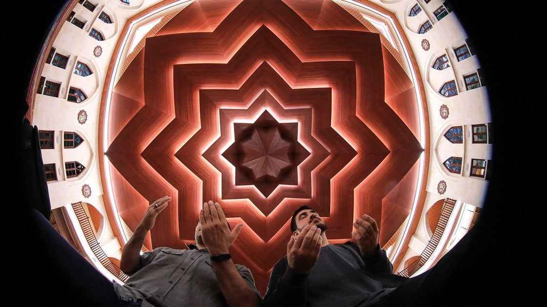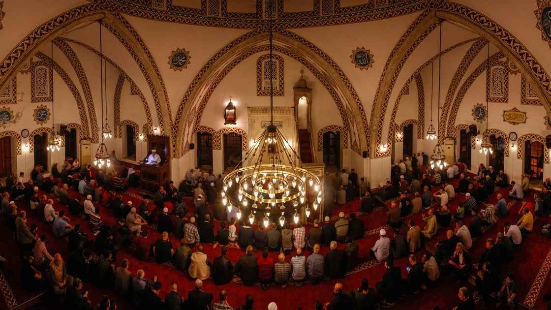 Osmanlı'nın Trakya'daki ilk mirası Hızırbey Camisi'nde akşam namazını kılanlar, ellerini dua için semaya açtı.