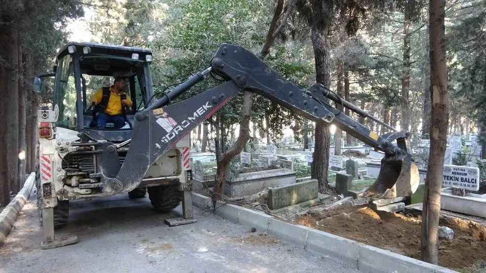 Yakınlarının mezarına ziyarete gelen bazı vatandaşlar depremden sonra yola gelen kabri görünce gözlerine inanamıyor. Açılan mezarlar ise iş makinalarının yardımıyla kapatılıyor.