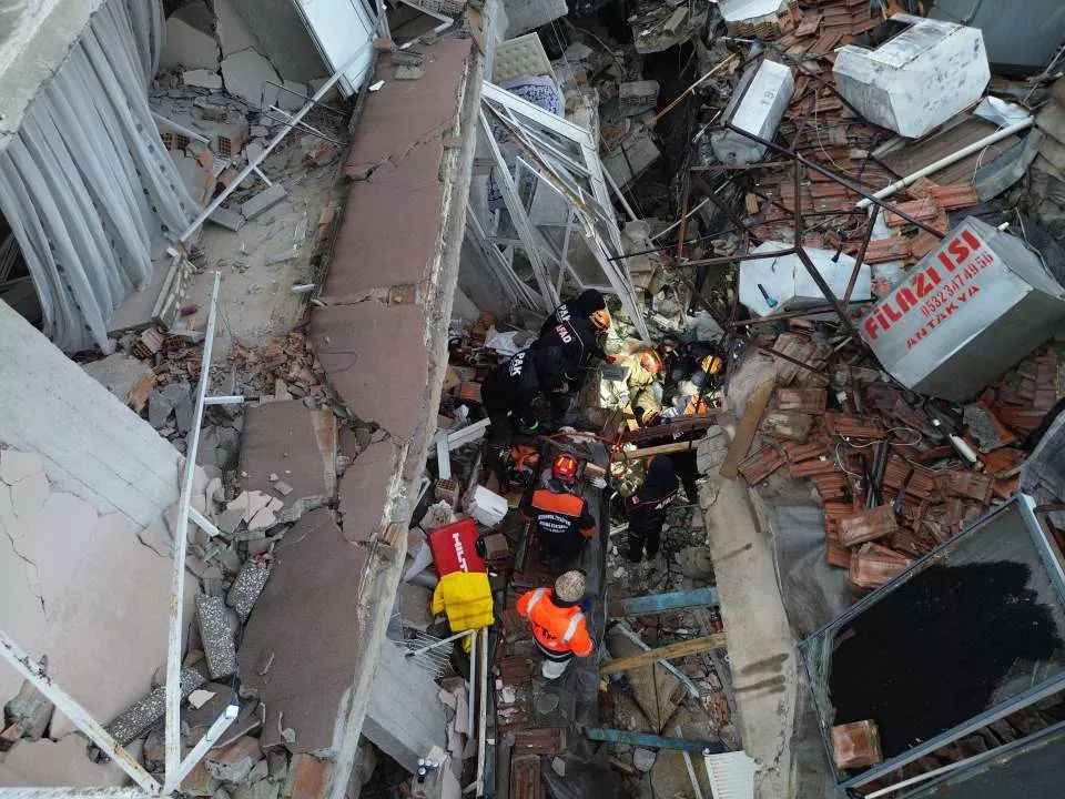 Enkaz alanı sabahın ilk saatlerinde havadan görüntülendi.