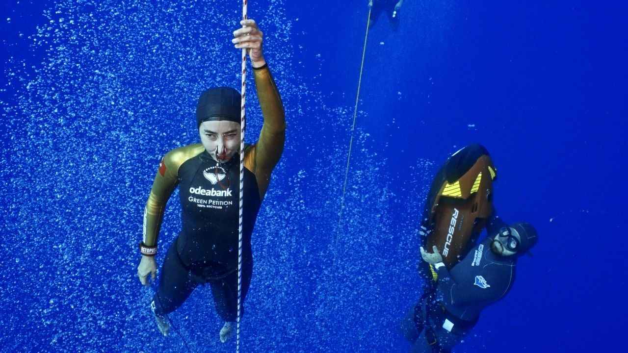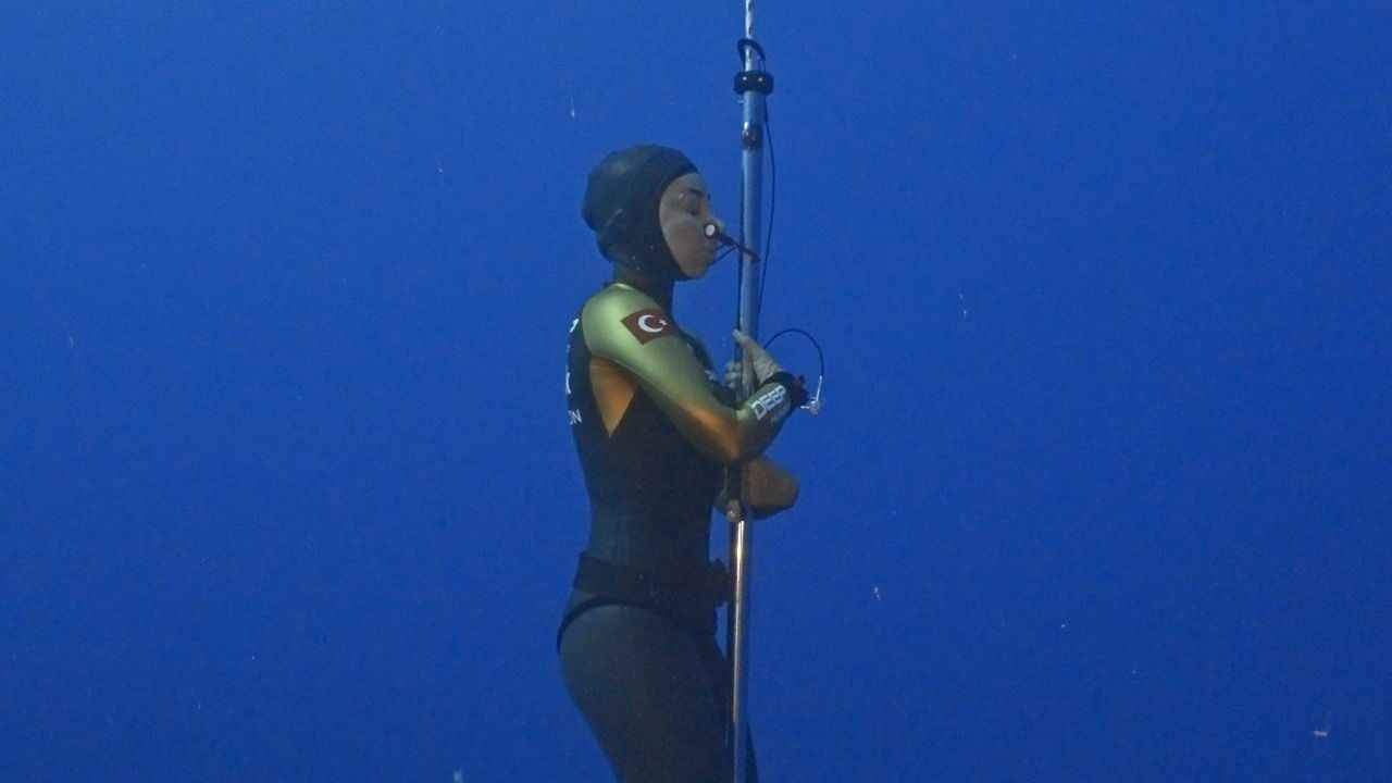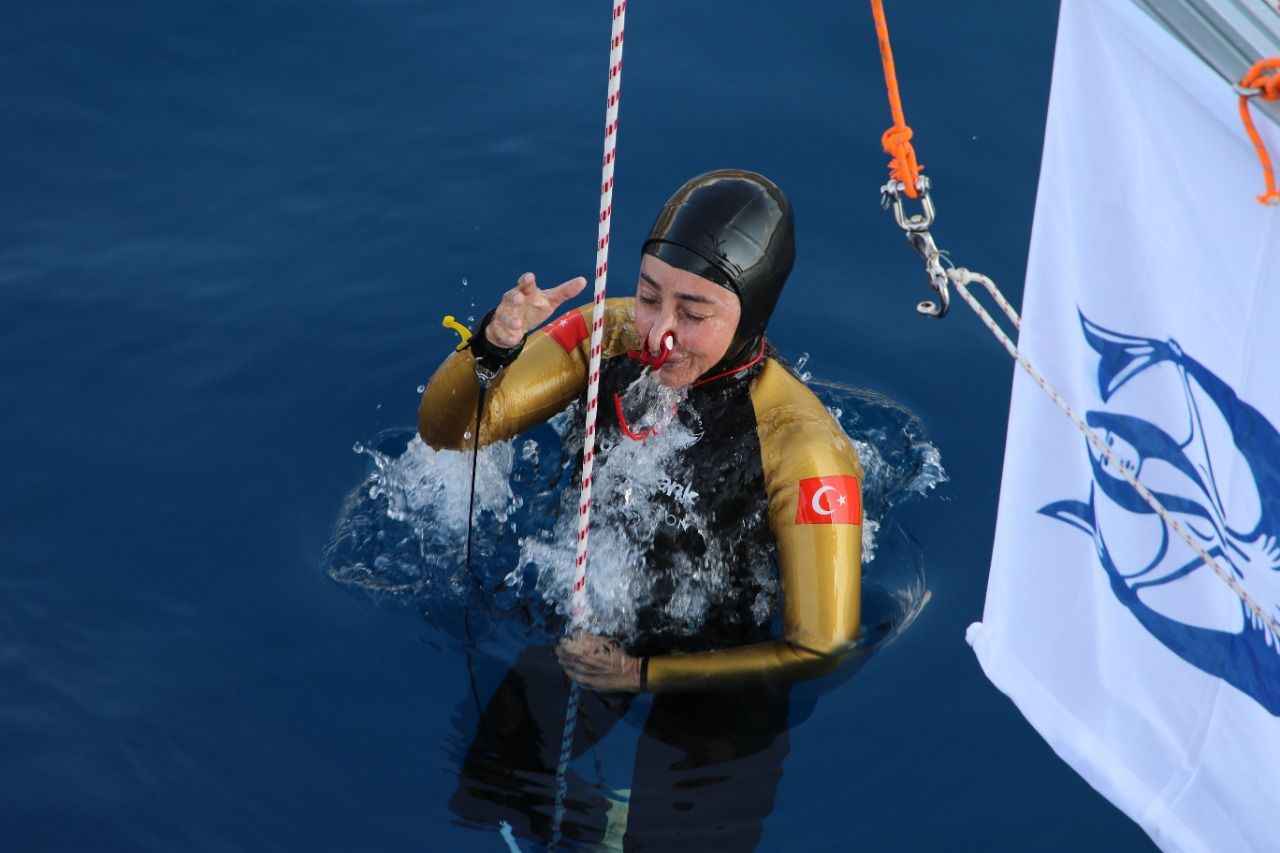 Paletsiz ve tüpsüz 100 metre derinliğe 2 dakika 53 saniyede inen Şahika Ercümen, sudan çıktıktan sonra gazetecilere yaptığı açıklamada, 98 metreden ileriye dalarak dünya rekorunu Cumhuriyet'in 98. yıl dönümüne ve Mehmetçiğe ithaf etmek istediğini söyledi.