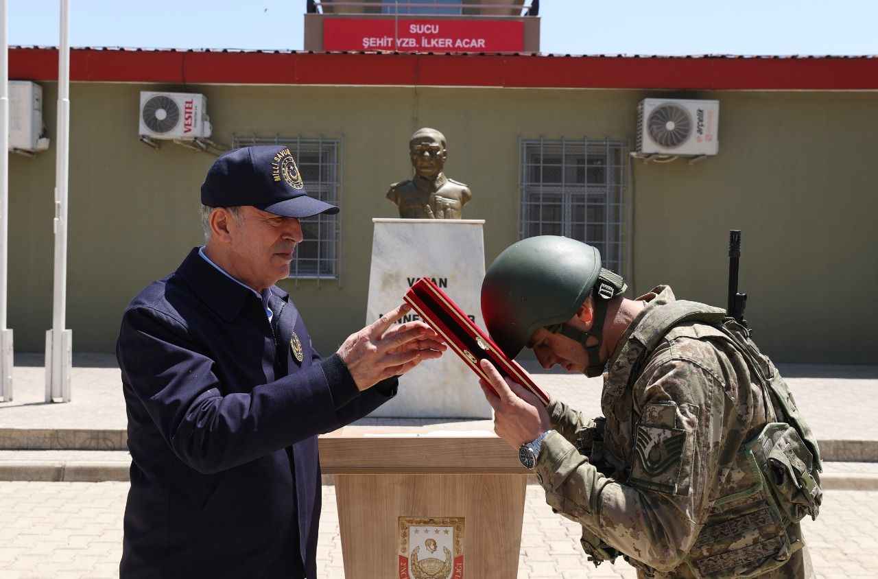 Şehit Yüzbaşı İlker Acar Hudut Karakolu'na gelen Akar, 39. Mekanize Piyade Tugay Komutanı Tuğgeneral Hakan Tutucu'dan hudut tekmili aldı.