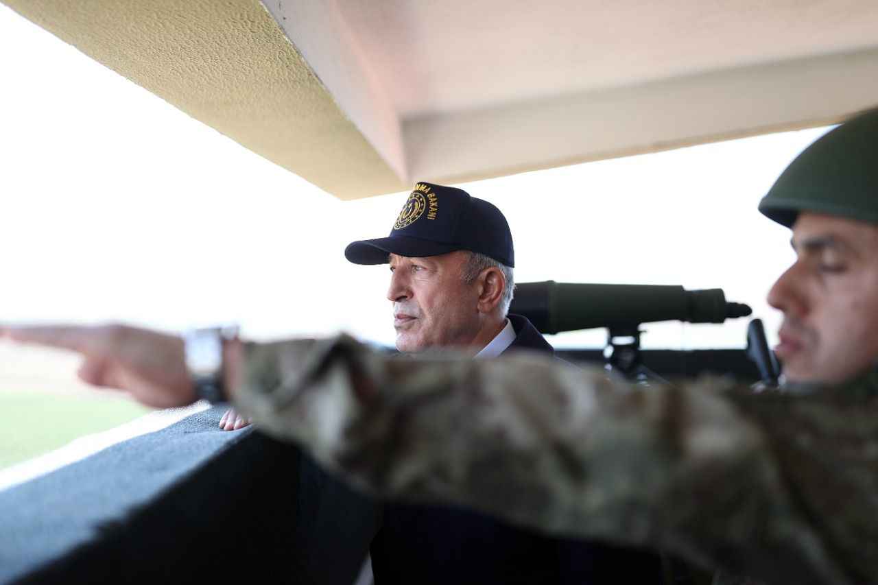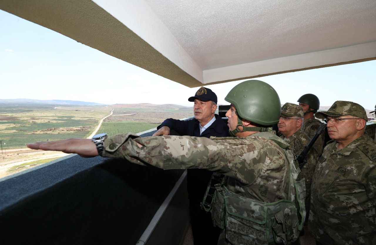 Hatay Havalimanı'nda Vali Rahmi Doğan, 6. Kolordu Komutanı Korgeneral Metin Tokel ve diğer yetkililer tarafından karşılanan Akar, buradan sınırın sıfır noktasına hareket etti.
