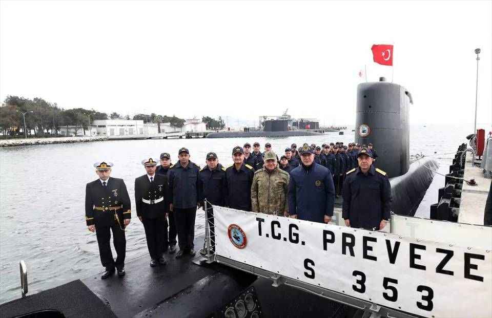 Burada tören kıtasını selamlayan Akar, "Derinliklerin efsanesi" parolasıyla görev yapan TCG Preveze denizaltısına gitti.