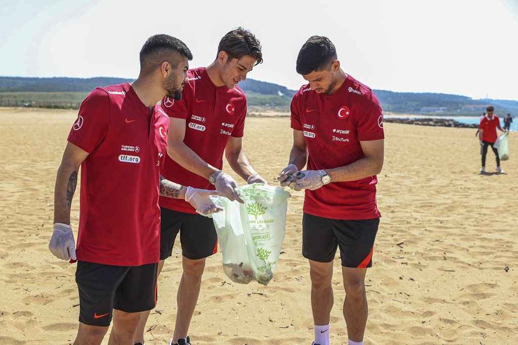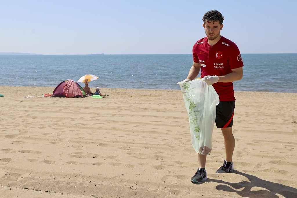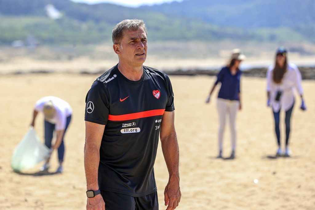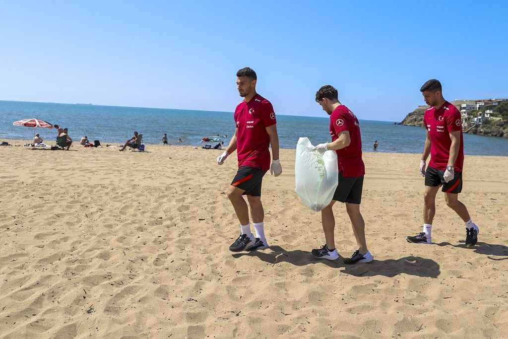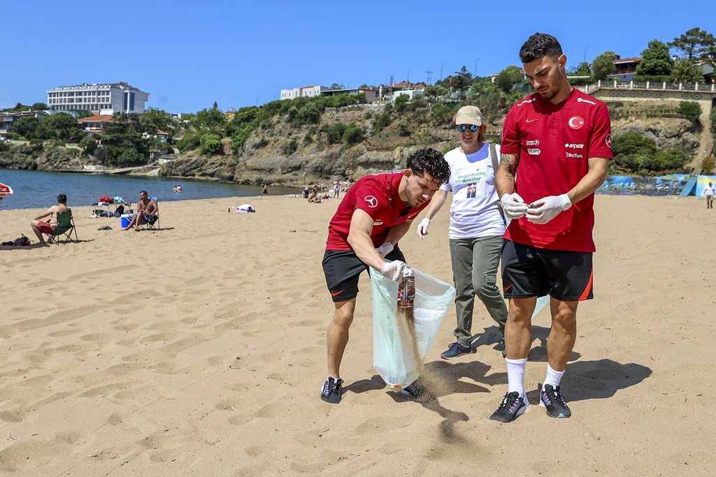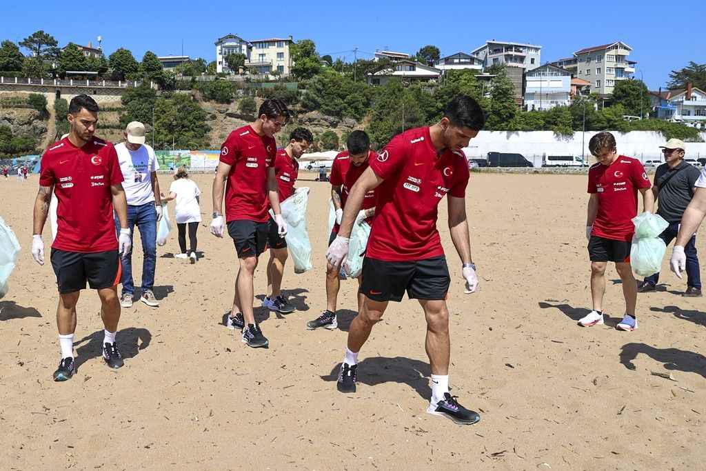 A Milli Futbol Takımı Teknik Direktörü Stefan Kuntz ve milli futbolcular, Riva Halk Plajı'nda kıyı temizliği ve çevre kirliliğini önleme etkinliğine katıldı.