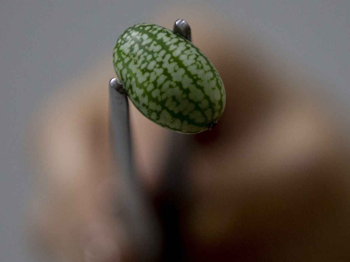 Antalya`da bir tarım firmasının ürettiği, tadı hıyara, görünümü karpuza benzeyen mini meyve büyük ilgi görüyor.