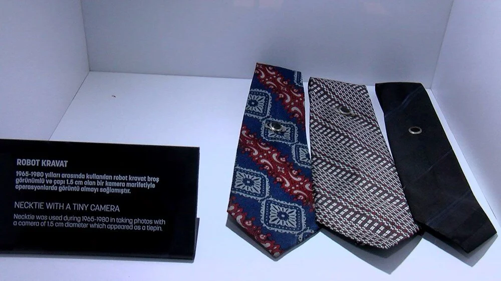 Kuş ayakları, taşlar, tuğlalar ve türlü göze batmayan kravatlar ve ses kayıt gibi şifreli şeyler, telsiz basküller gibi alışılmış formun dışında saklanabilecek, gizlenebilecek bilgi ve görseli taşıyabilmeye yarayan birçok nesne de sergilenen eşyalar arasında yer alıyor.