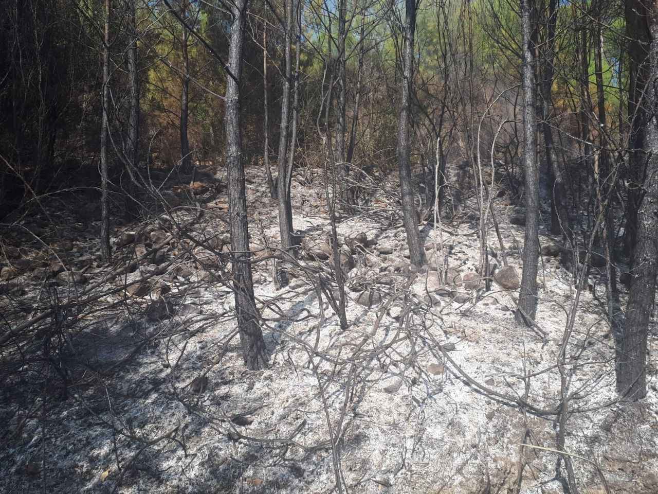 Söndürülen yangında 1,5 dönüm ormanlık alan zarar gördü.