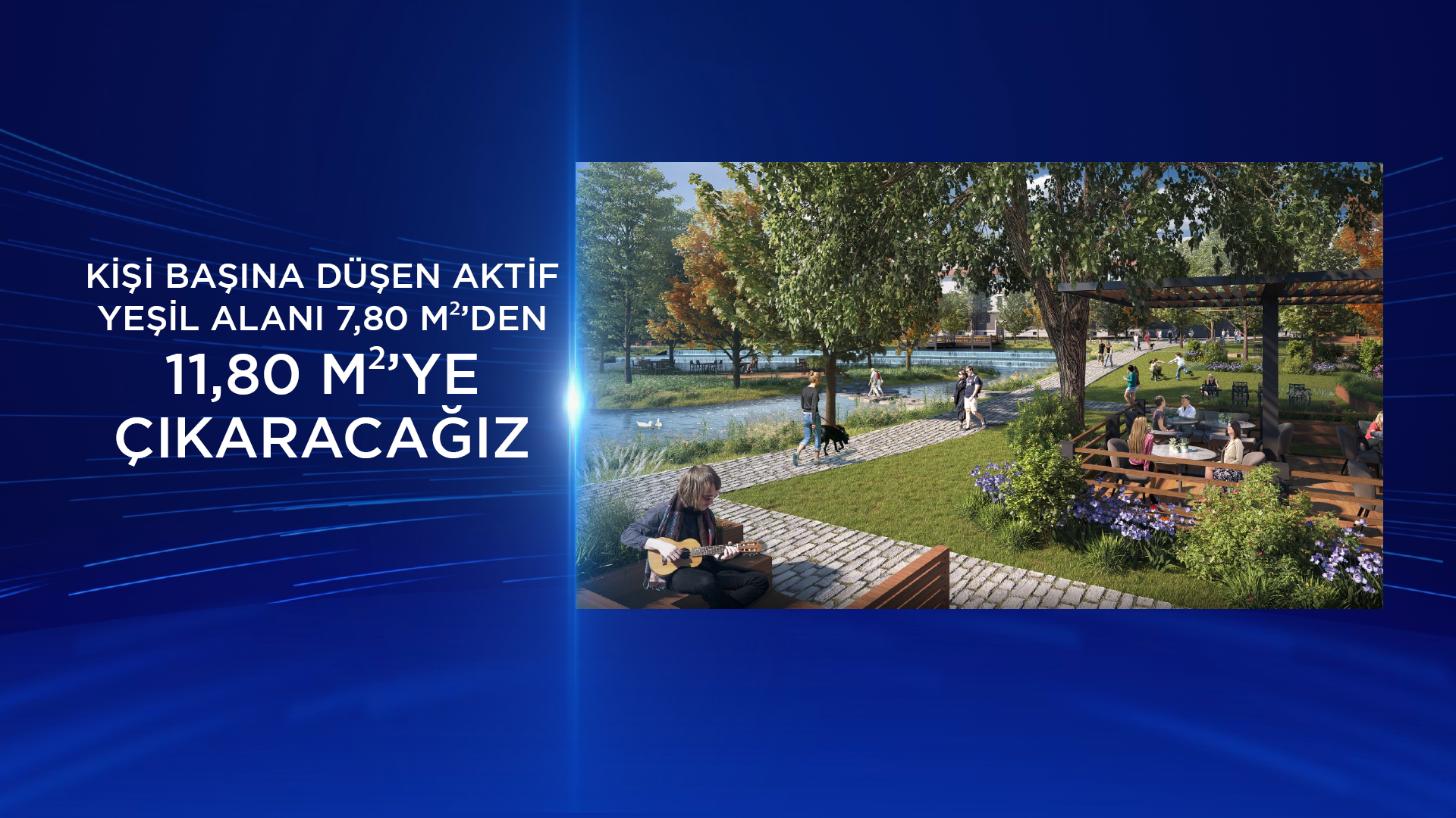 9 yeni ileri arıtma tesini kentimize kazandıracağız. İstanbul'a 6 yeni içme suyu barajı yapacağız. Kentin su kapasitesi yüzde 21 artacak. 2 adet 3 bin tonluk karı atık yakma tesisi yapacağız. İklim Dostu İstanbul projemiz ile hedefimiz 2040 yılında net sıfır emisyona ulaşmak olacak.