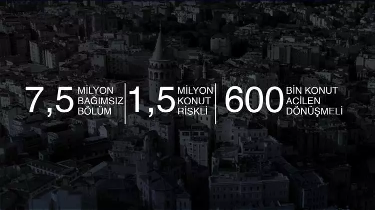 650 bin yeni yuvanın 250 bini; vatandaşların anlaştığı özel sektör firmaları eliyle dönüştürülecek. Bunun için de binanın bulunduğu alana dair imar düzenlemeleri hemen hayata geçirilecek.