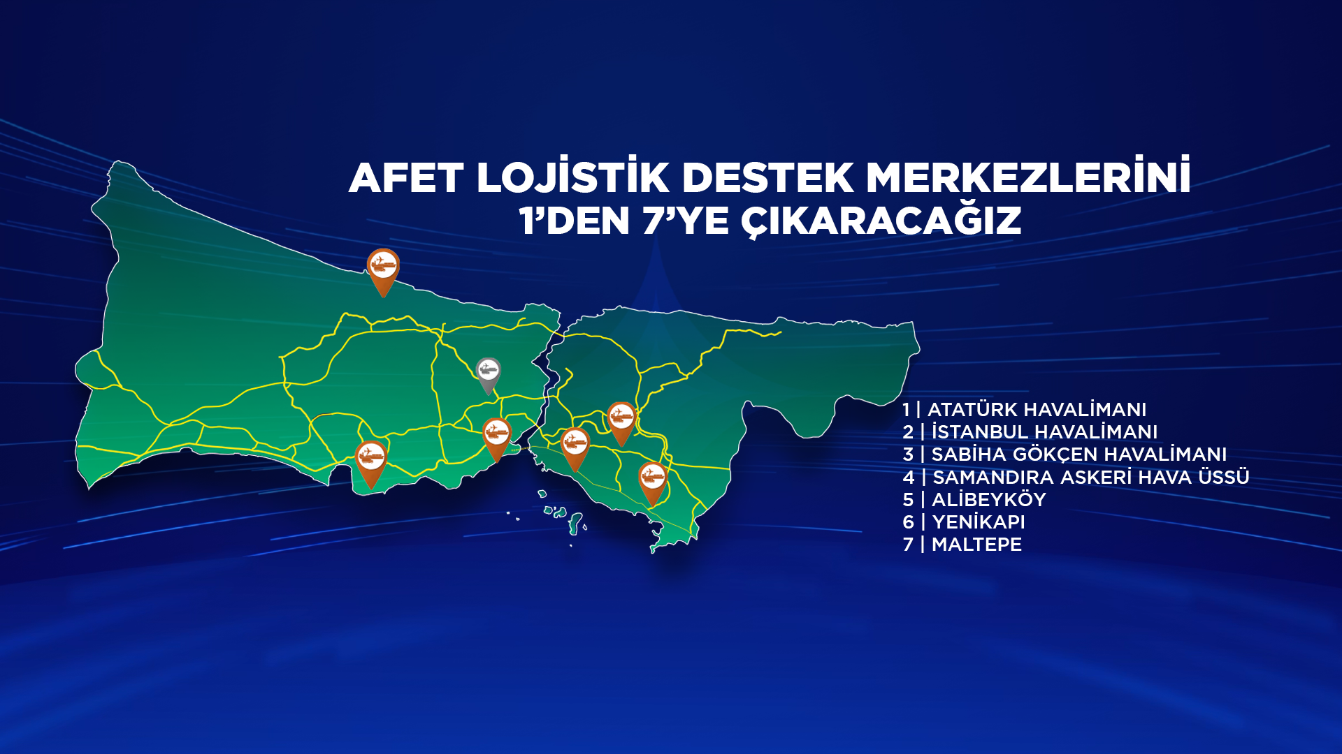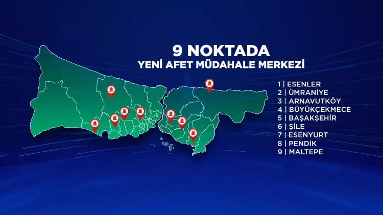 Afet durumları için 9 noktada itfaiye, tıbbi ünite ve iletişim altyapısına sahip 9 adet Afet Müdahale Merkezi kurulacak.