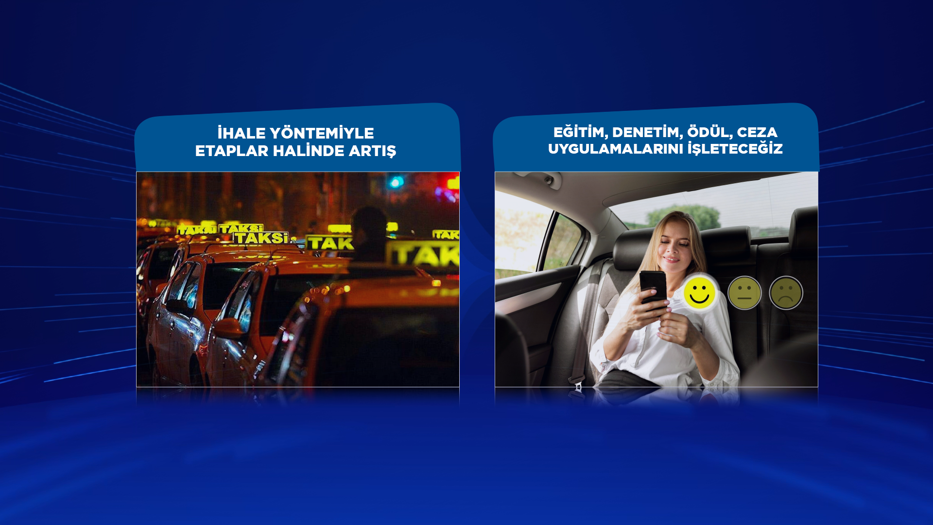 Taksi sorununu tamamen çözeceğiz. Tüm sistemleri 'Merkezi Taksi Sistemi' çatısı altında birleştireceğiz. Tek çatı altında bu çalışmaları yaparak taksi sayısını artıracağız.