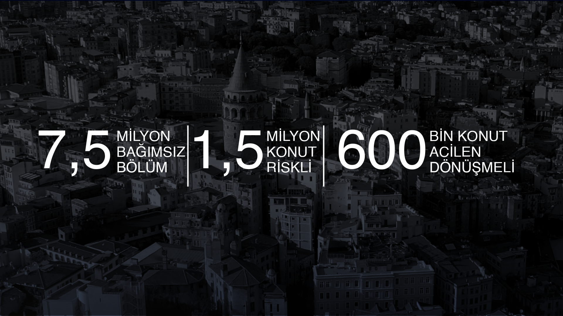 650 bin konutun tamamı zemin artı 5 katı geçmeyecek şekilde; yatay mimariyle tasarlanacak. Geniş sosyal donatılarıyla, sürdürülebilir, dirençli, keyifle ve konforla, yeşil içinde yaşanabilir kentsel dönüşüm sağlanacak.