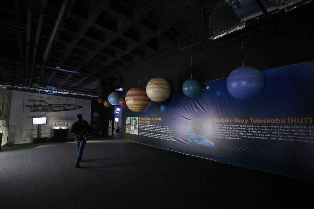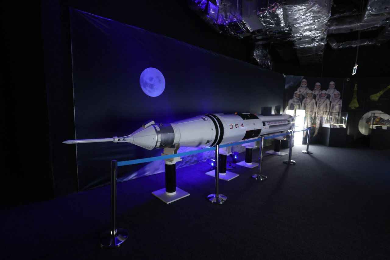 Ziyaretçilerin dokunabileceği gerçek Ay Taşı'nın da bulunduğu sergide, uzay roketlerinin kopyaları ve tam boyutlu uzay aracı modelleri, Saturn V roketinin 10 metre uzunluğundaki modeli, uzaya giden astronotlar tarafından bizzat giyilen kıyafetler, astronot menüleri ve görevlerde kullanılan ekipmanlar ile Apollo kapsülü, Sputnik 1 uydusunun ve Uluslararası Uzay İstasyonu'nun (ISS) modelleri en çok ilgi çeken parçalar arasında yer alıyor.