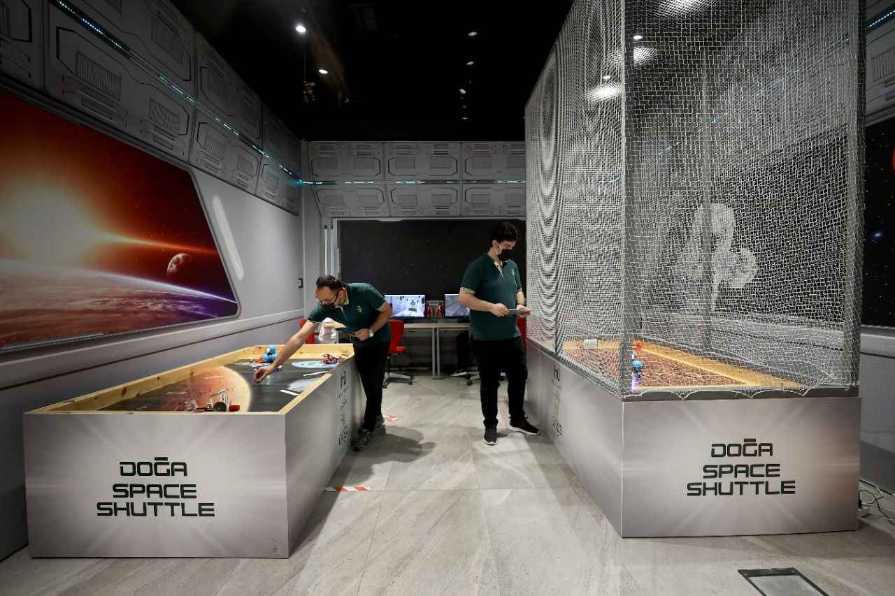 Doğa Space Shuttle alanı ile ilgil bilgi veren İTÜ ETA Vakfı Doğa Koleji Kodlama ve Robotik Bölüm Başkanı Muammer Özkan ise, "Etkinlik alanımızda üç farklı etkinlik grubumuz var. Burada öncelikli olarak Minecraft'ta düzenlenmiş olan uluslararası uzay istasyonunun içerisinde dolaşma şansımız var. Öğrencilerimize dijital ortamda bu imkanı sunuyoruz. Onun dışında etkinliğimizin sağ tarafında görünen alanda ise Mars yüzeyinde farklı görevler tanımladığımız bir Mars kampüsümüzü canlandırıyoruz. Bu kampüs için gerekli olan materyalleri Mars yüzeyinden topluyoruz. Sol taraftaki etkinlik alanımızda ise dünyadan Mars'a yolculuğu simüle ediyoruz." açıklamasında bulundu.
