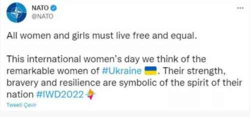 Tüm bu gelişmeler yaşanırken, NATO'nun resmi Twitter hesabından, 8 Mart Dünya Emekçi Kadınlar Günü'nü dair bir paylaşım yapıldı.