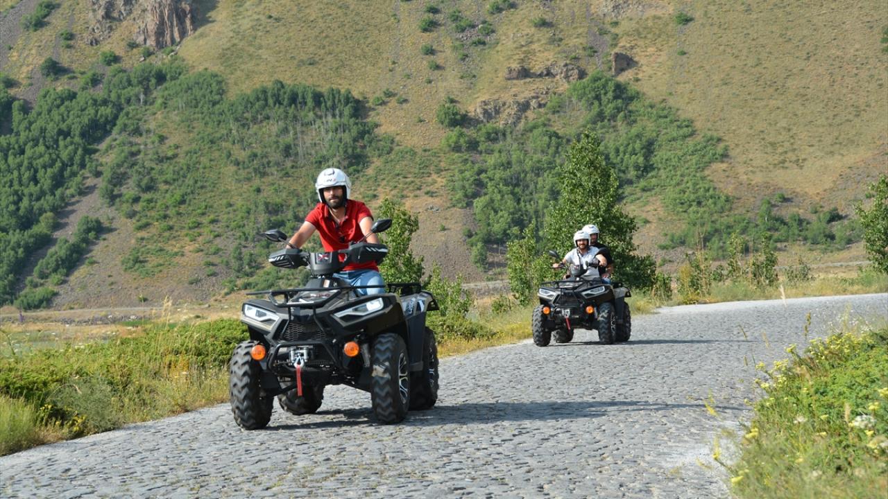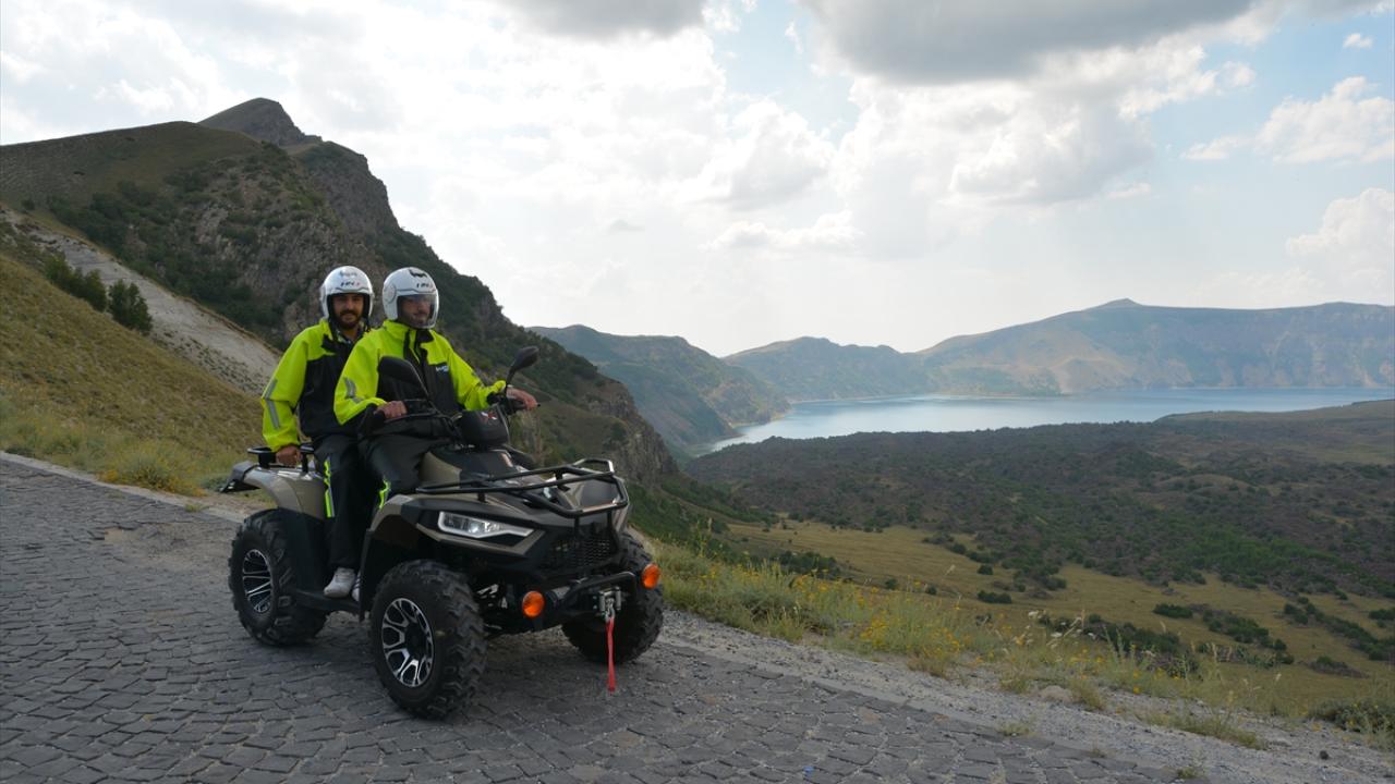 Bitlis'in Tatvan ilçesinde Türkiye'nin en büyük krater gölünün de bulunduğu Nemrut Kalderası'na gelen ziyaretçiler, ATV turları ile eğlenceli vakit geçiriyor. Avrupalı Seçkin Destinasyonlar Projesi kapsamında "Mükemmeliyet Ödülü" alan Nemrut Krater Gölü mevkisinde düzenlenen ATV turları, bölgenin güzelliklerini keşfetmek isteyen yerli ve yabancı turistlere aktivite imkanı sunuyor.