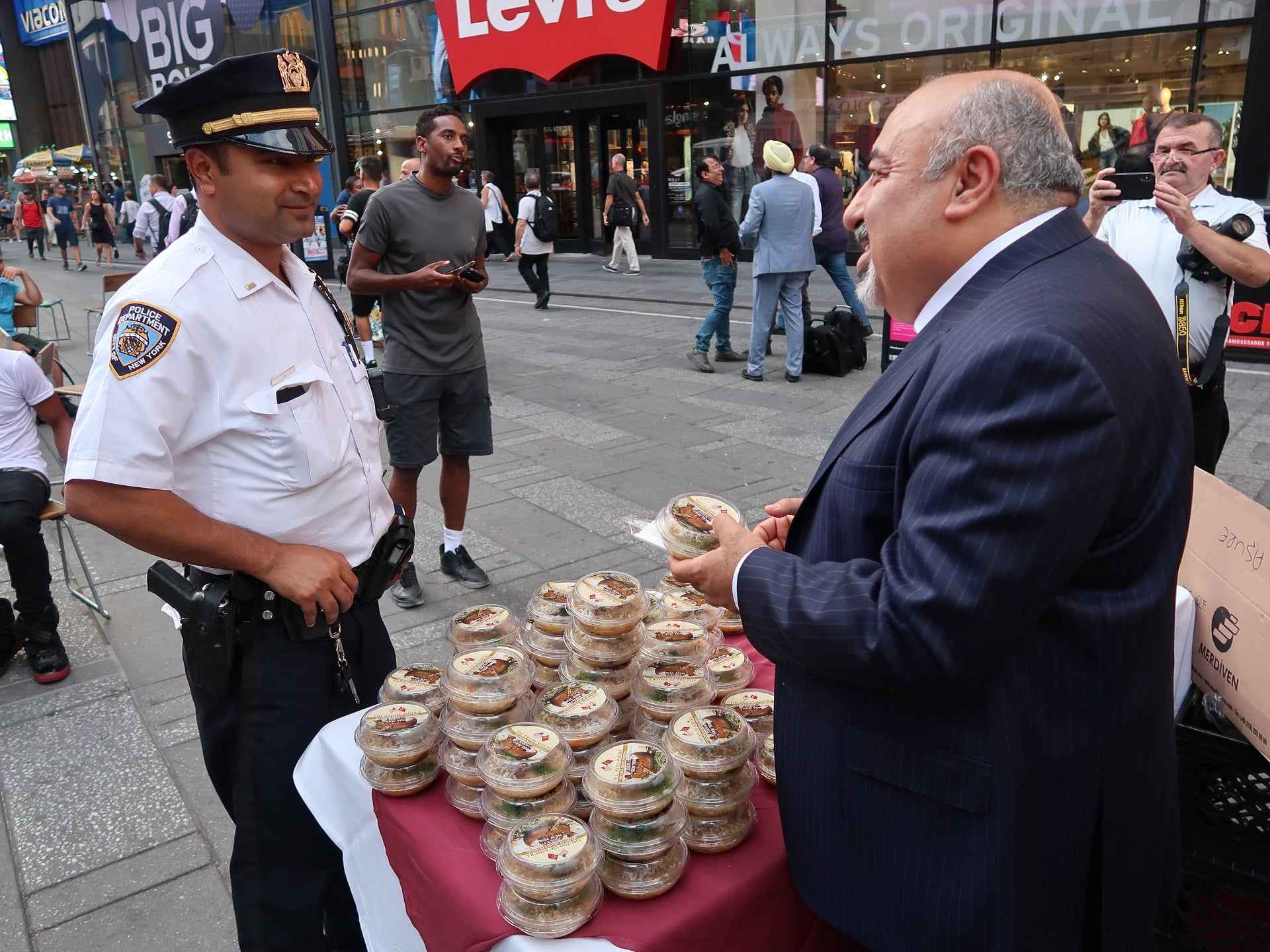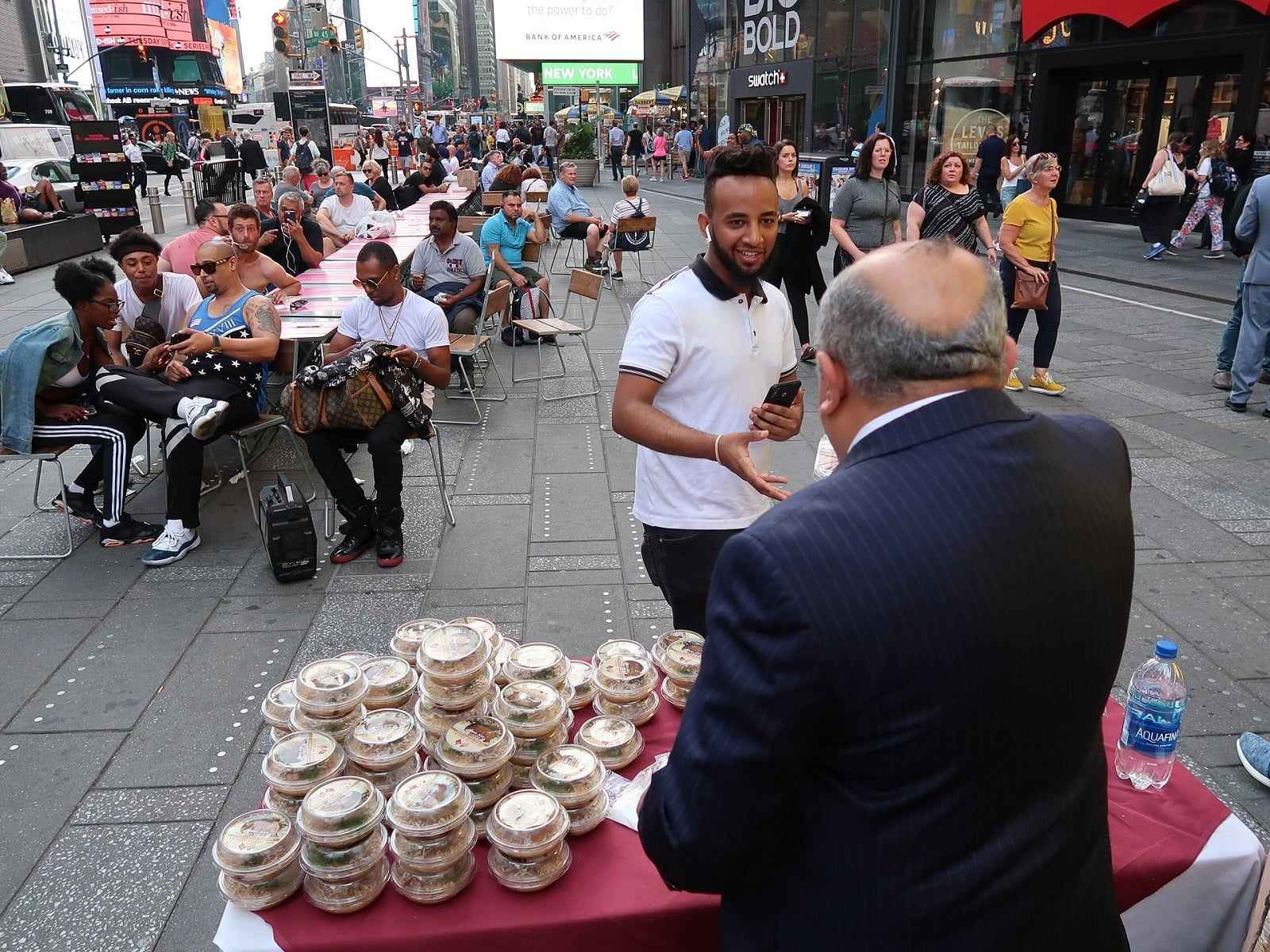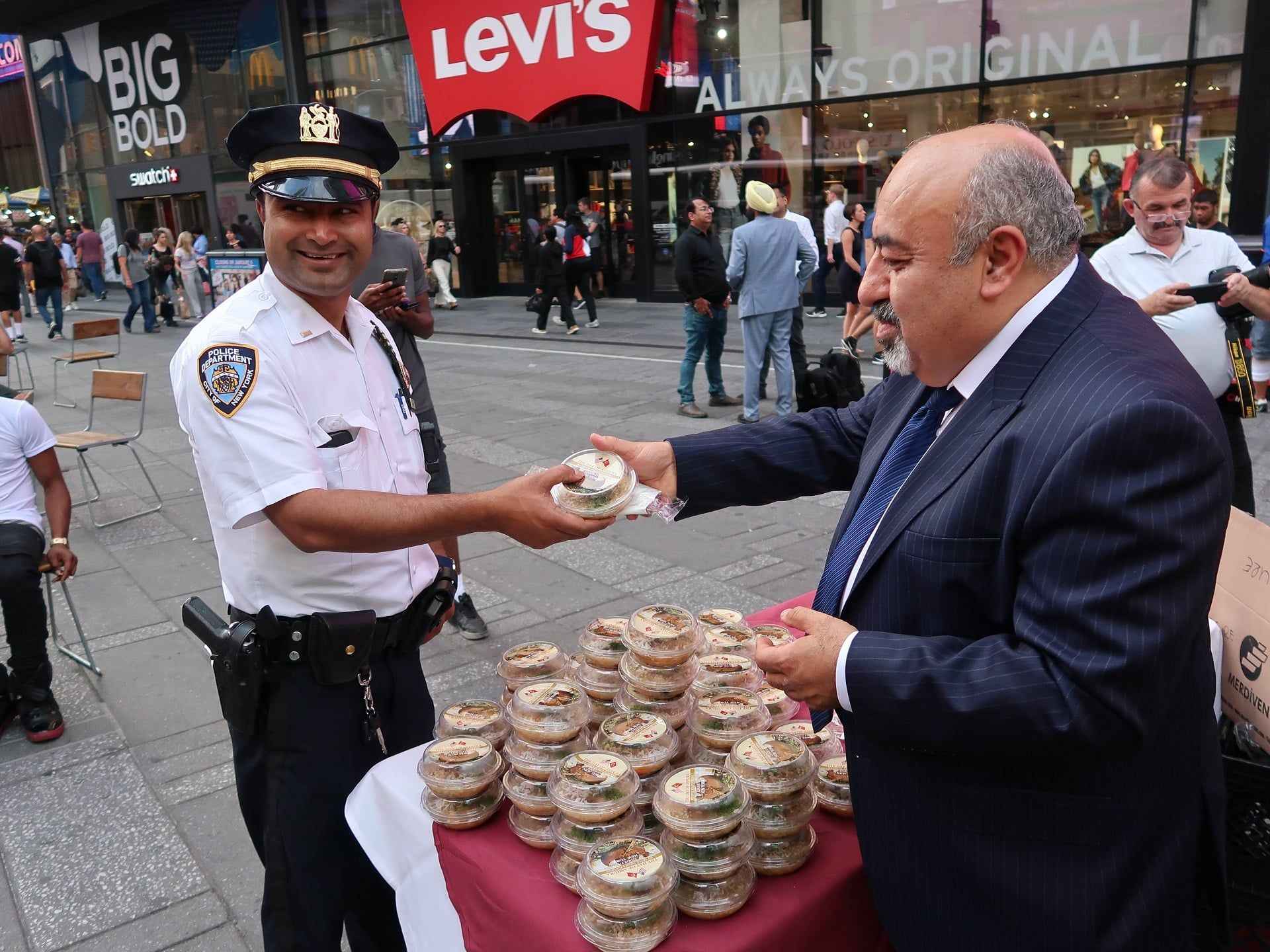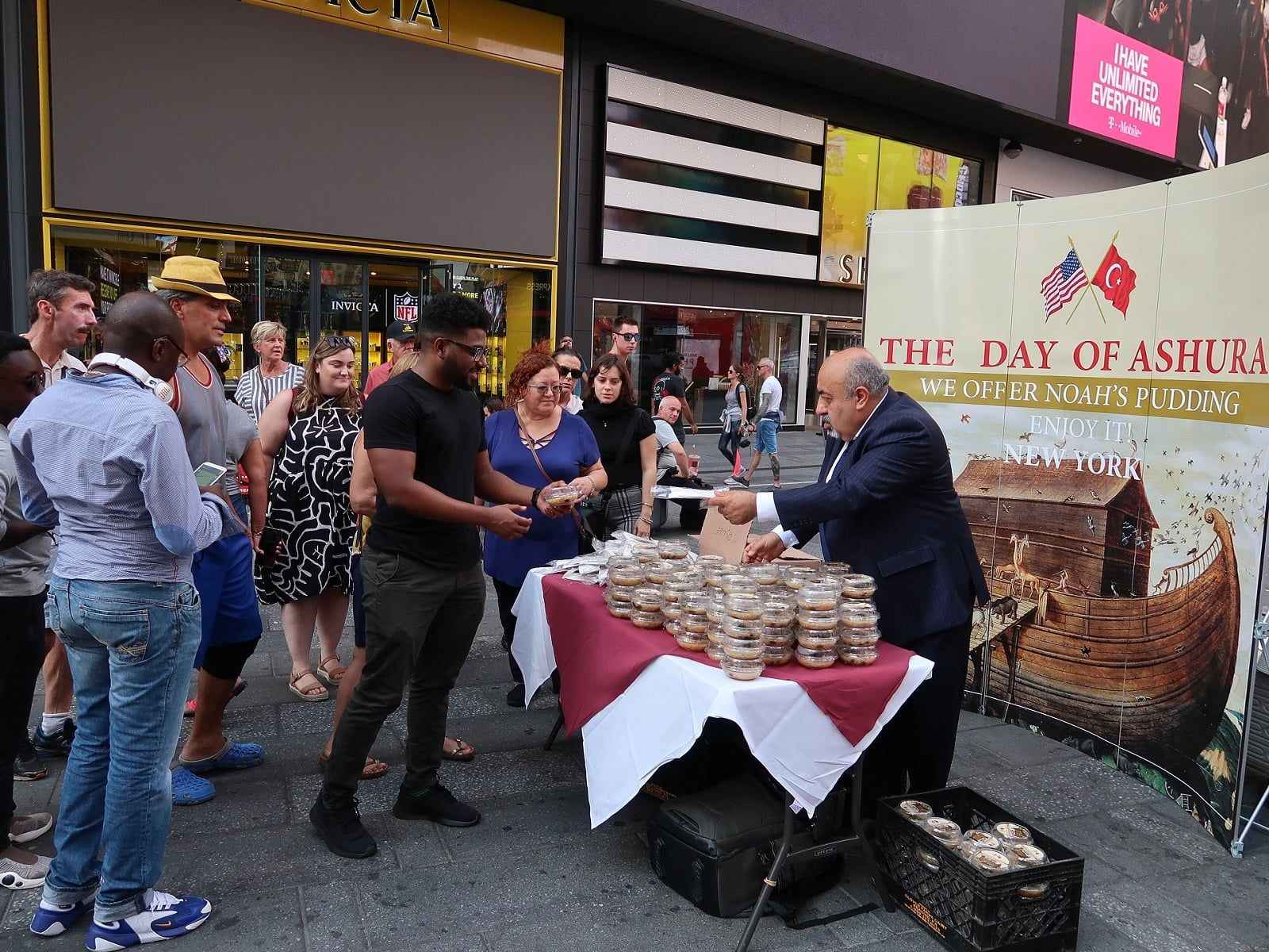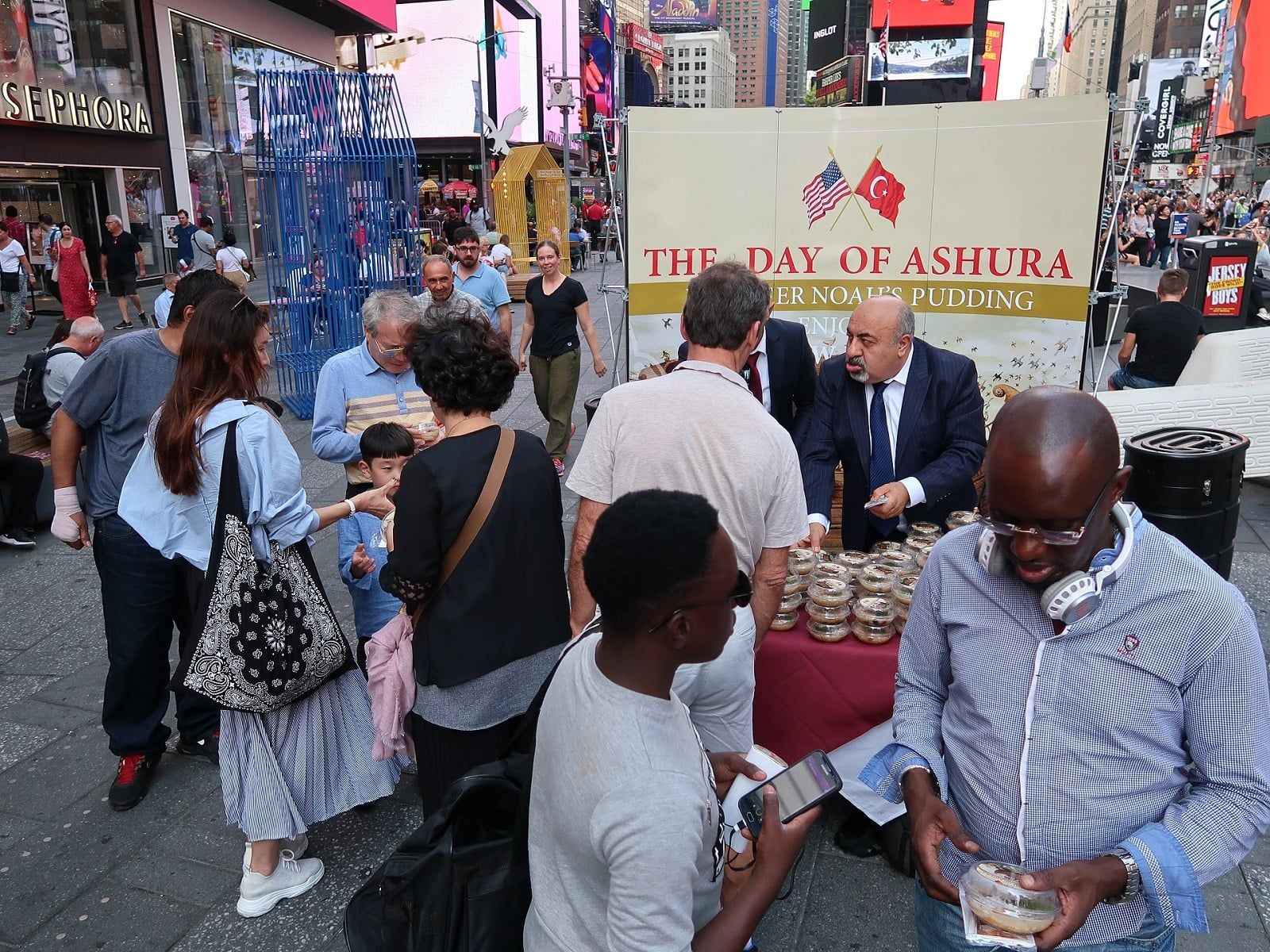 New York'un sayılı mekanlarından Ali Baba Restoran tarafından Times Meydanı'nın en işlek noktalarından birine kurulan masaya dizilen aşurelere, meydandaki Amerikalılar, turistler ve bölgede görev yapan New York polisi büyük ilgi gösterdi.