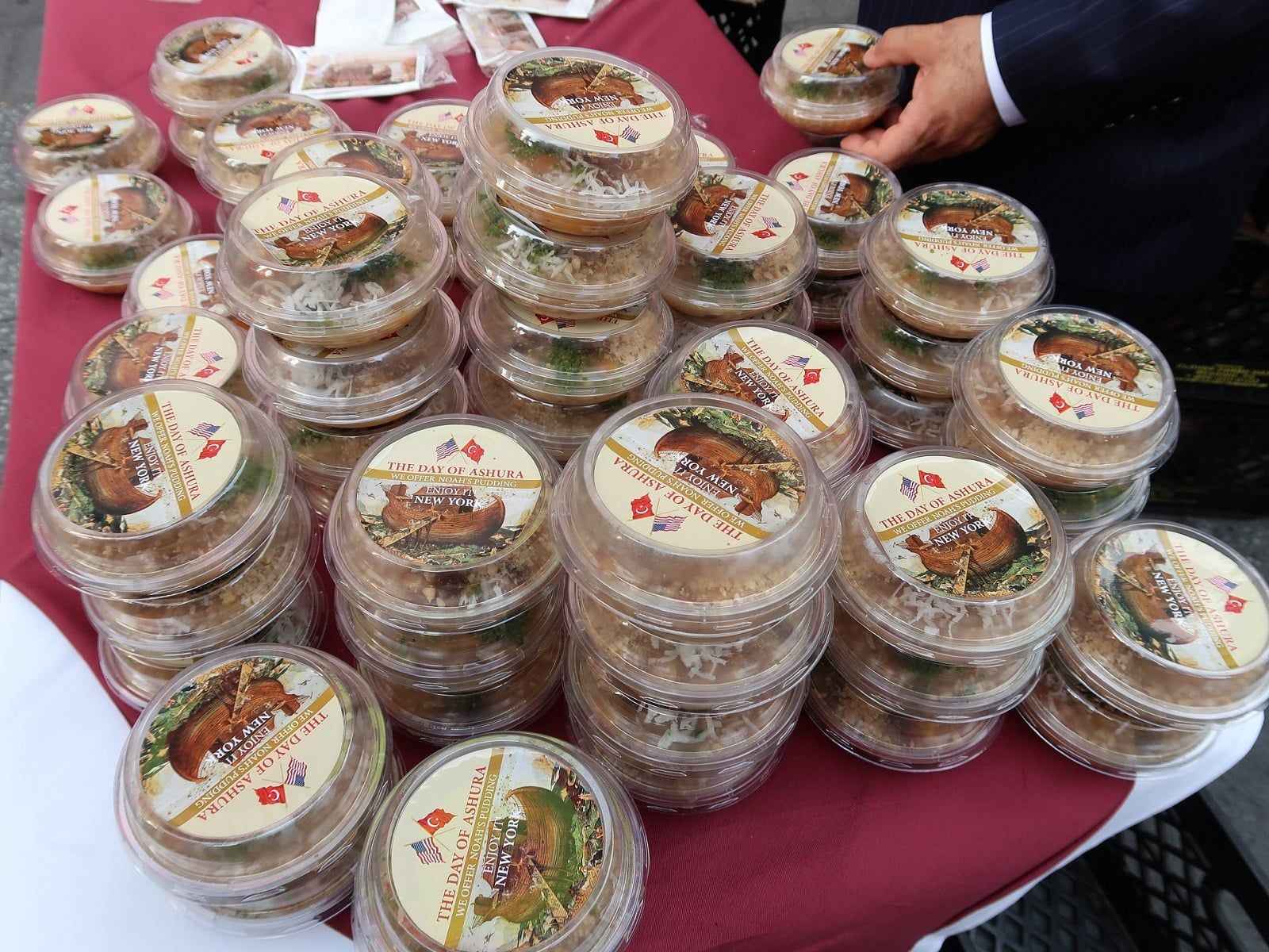 New York Başkonsolosluğunun talebi üzerine bu sene ikinci kez aşure dağıttıklarını belirten Ali Baba Restoran'ın sahibi Ali Rıza Doğan, İngilizcede "Noah's pudding" olarak bilinen aşureye yabancıların büyük ilgi gösterdiğini söyledi.