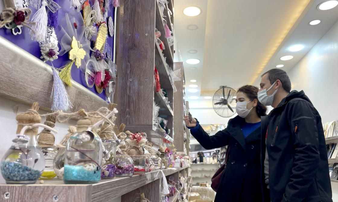Esnaf Hasan Çimen, pandemi kapsamında uygulanan kısıtlama kararlarının kaldırılmasının ardından işlerin hareketlendiğini, nikah şekeri ve hediyeliklere yurt içi ve yurt dışından yoğun talep olduğunu, havaların soğumasıyla hareketliliğin biraz azaldığını söyledi.