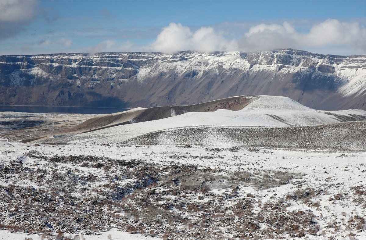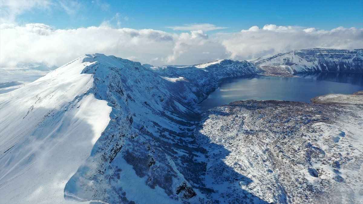 Dünyanın ikinci, Türkiye'nin en büyük krater gölü Nemrut, diğer mevsimlerde olduğu gibi kışın da doğası ve güzel manzarasıyla görenleri hayran bıraktı.