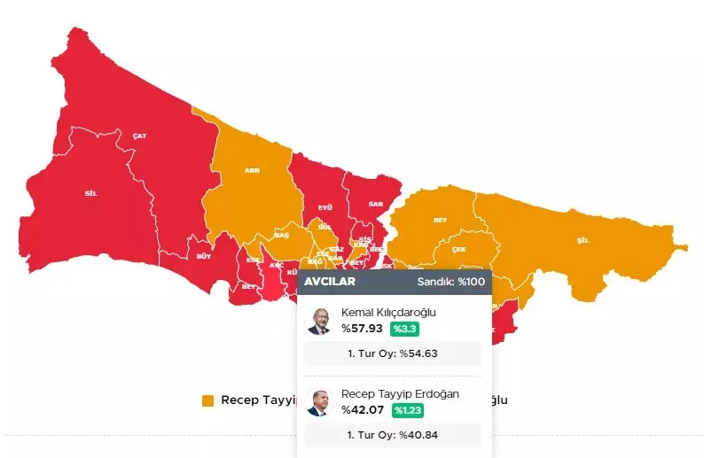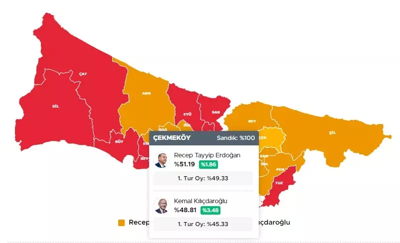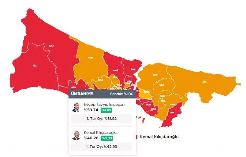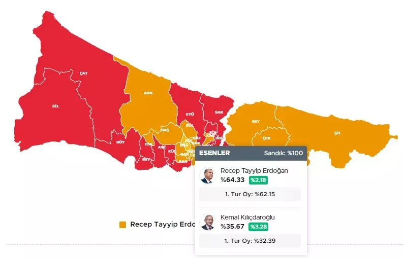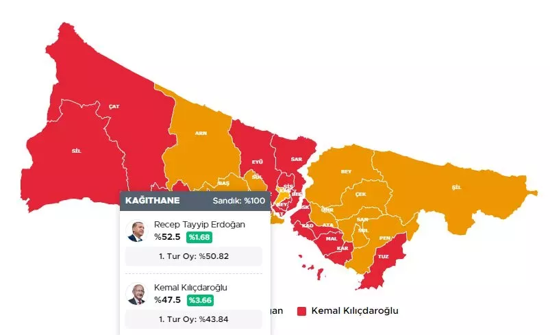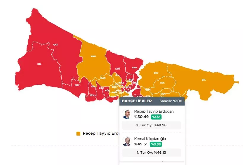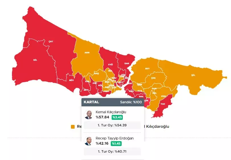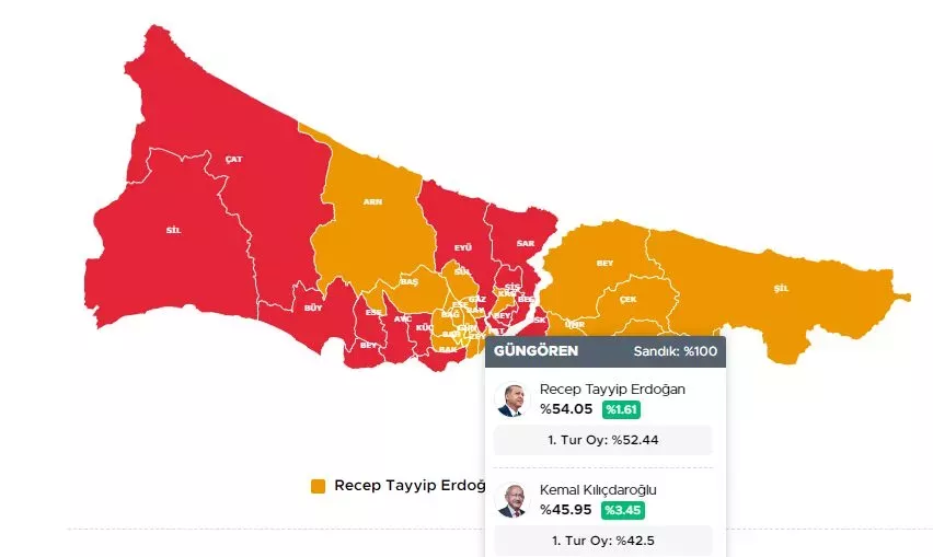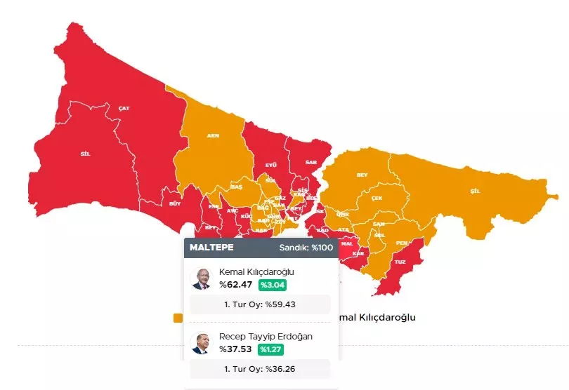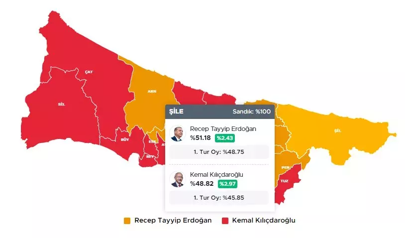 28 Mayıs seçimleri sonrası en çok merak edilenlerden birisi de İstanbul'un ilçelerinde hangi liderin daha çok oy aldığı konusu oldu. İşte ilçe ilçe İstanbul cumhurbaşkanlığı seçim sonuçları...
