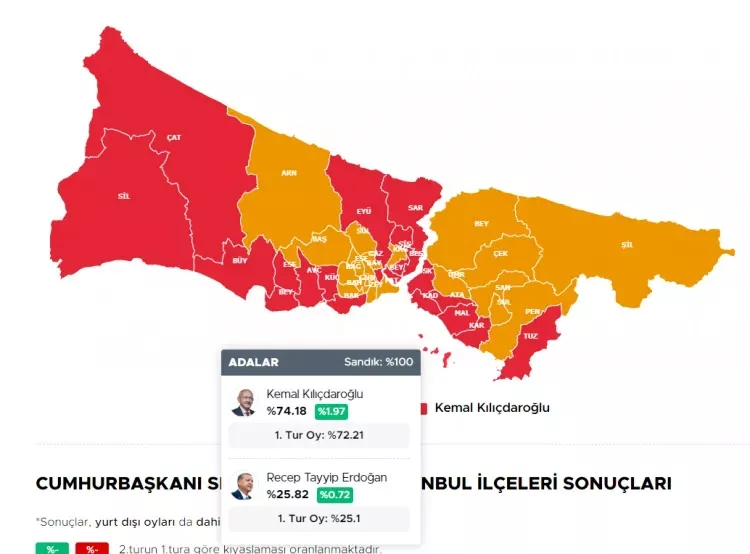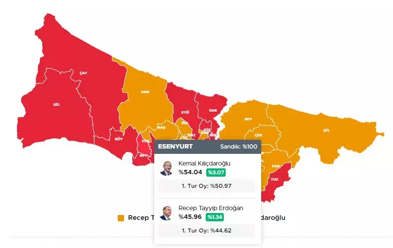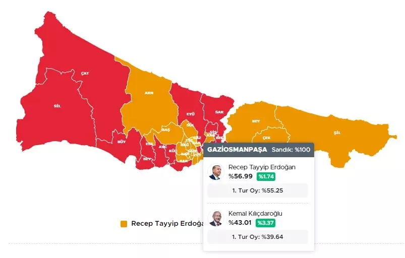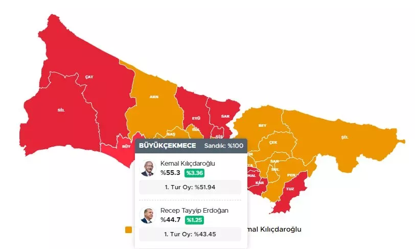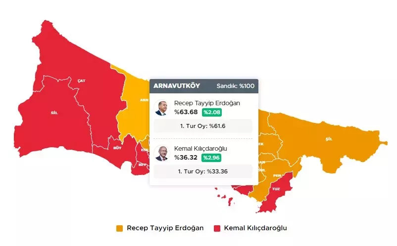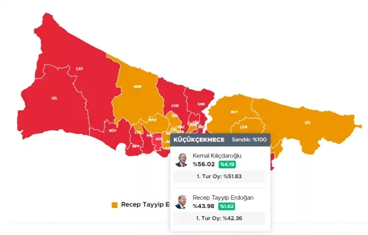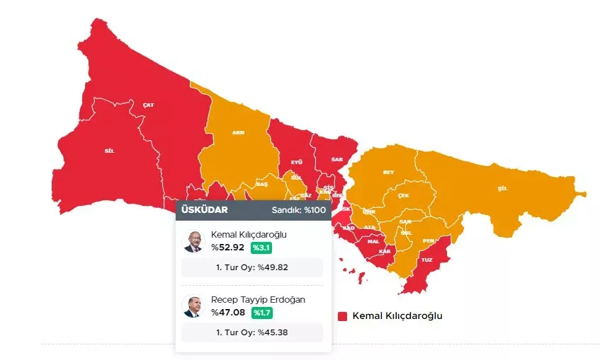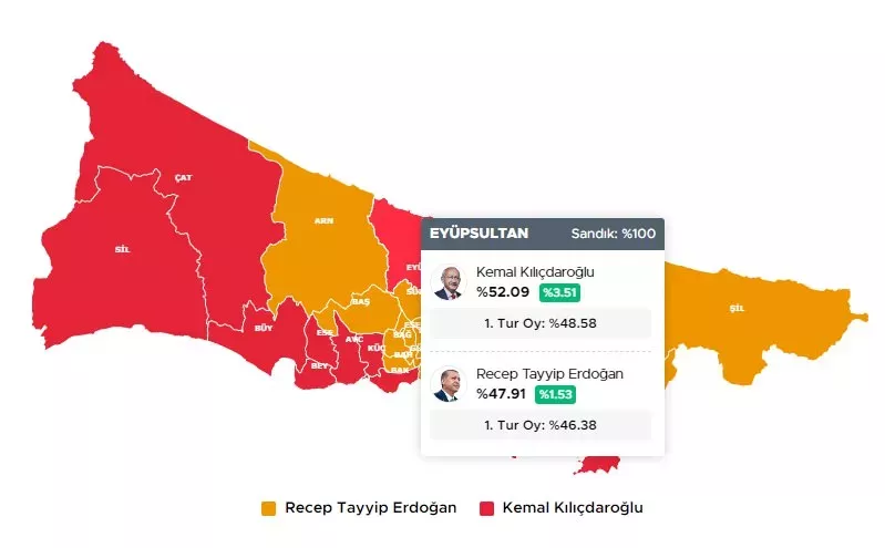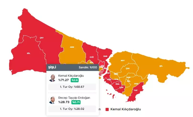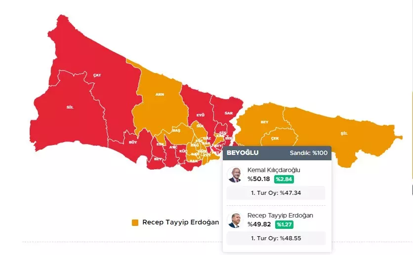 28 Mayıs seçimleri sonrası en çok merak edilenlerden birisi de İstanbul'un ilçelerinde hangi liderin daha çok oy aldığı konusu oldu. İşte ilçe ilçe İstanbul cumhurbaşkanlığı seçim sonuçları...