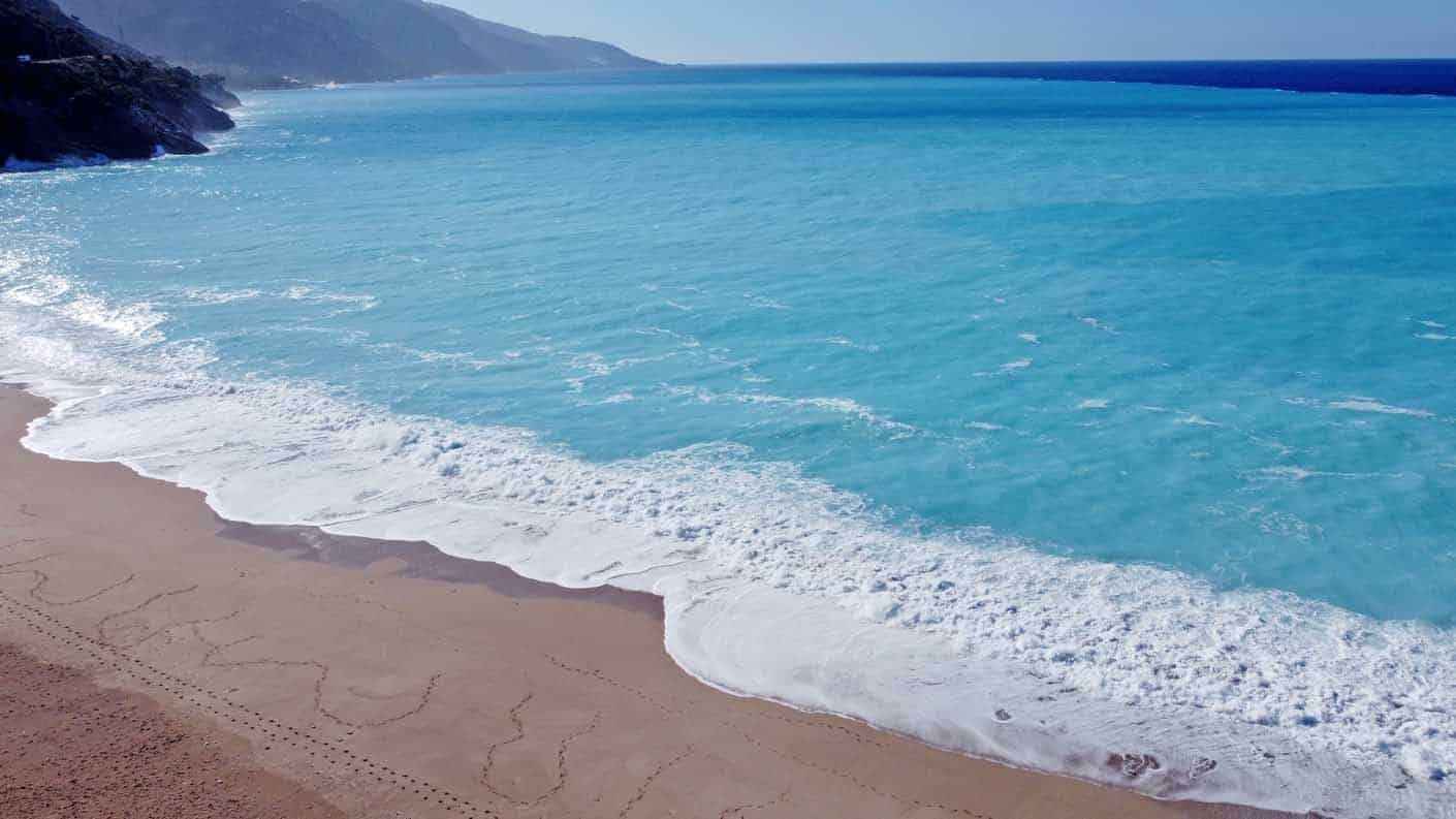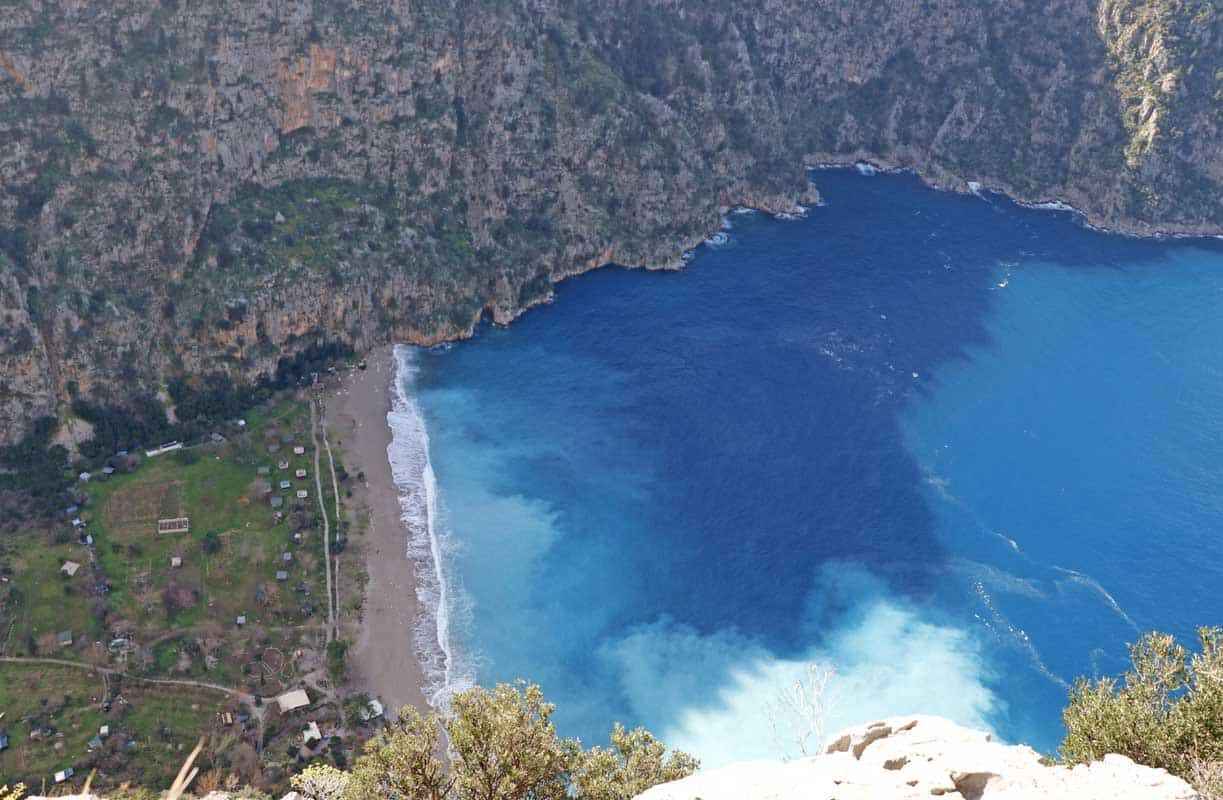 İlçeye yaklaşık 25 kilometre uzaklıktaki Kelebekler Vadisi Plajı'nda, yağışın ardından denizin rengi değişti.