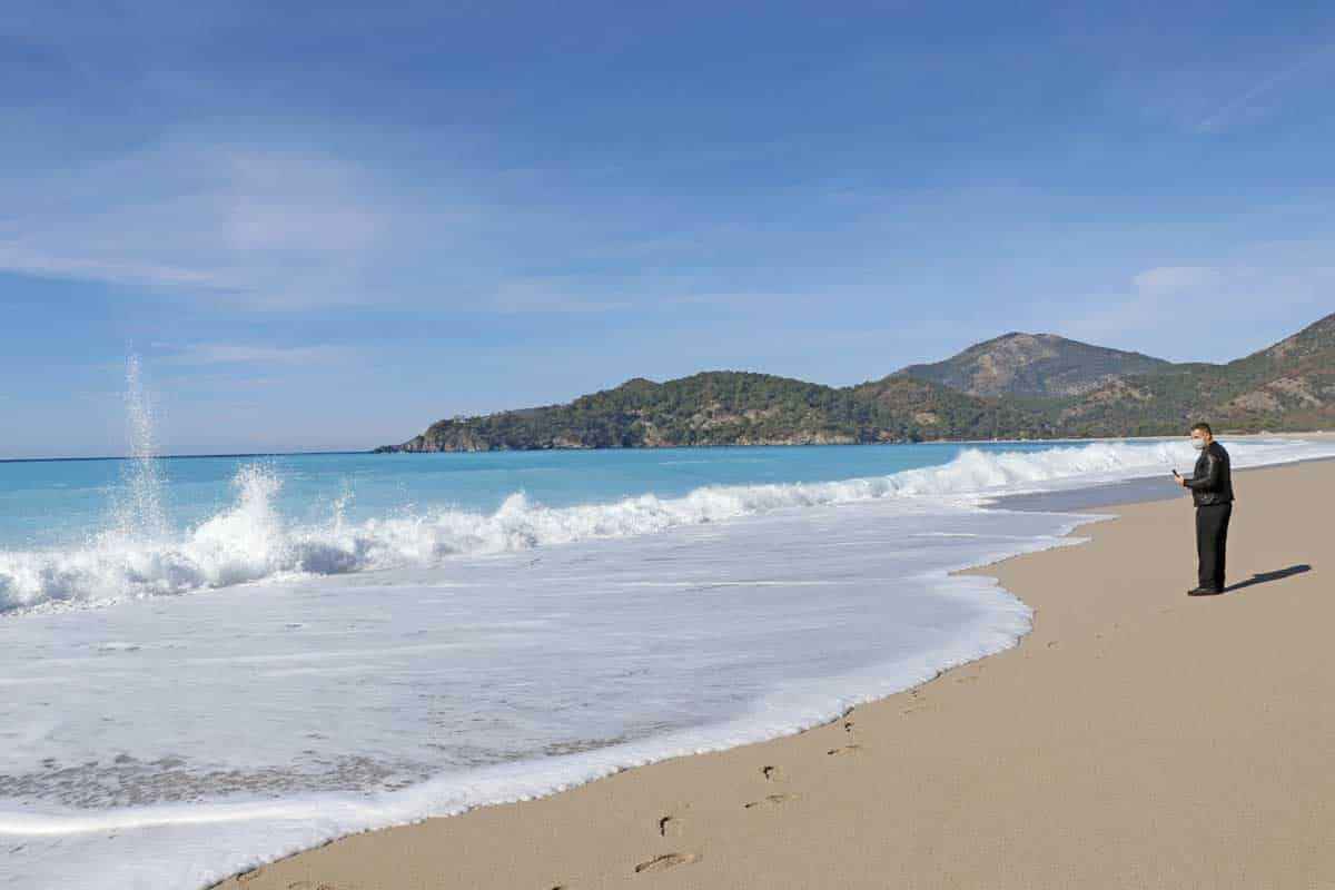 Salgın nedeniyle hafta sonu uygulanan sokağa çıkma kısıtlamasından muaf olan az sayıda turist, Ölüdeniz'deki eşsiz manzarayı fotoğrafladı.