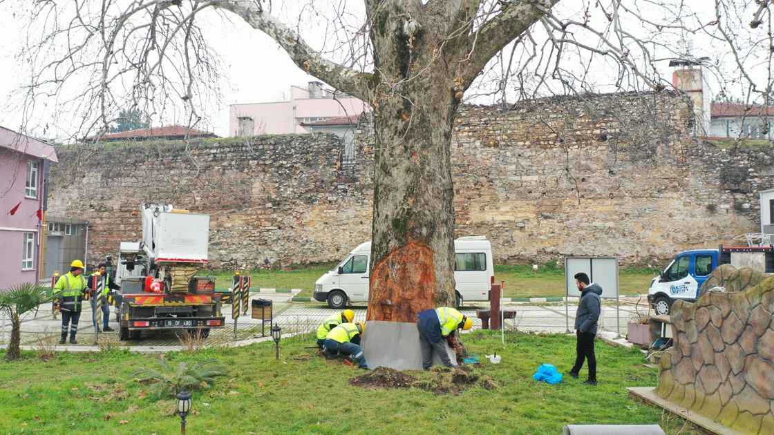 Şehri saran ve yaşları 100 ila 600 arasında değişen anıt çınar ağaçlarını sürekli gözlemleyen Bursa Büyükşehir Belediyesi ekipleri, çürümeye yol açan bakterilerden temizlenen ağaçları koruma altına alarak, çınarların daha uzun yaşamasını sağlıyor.