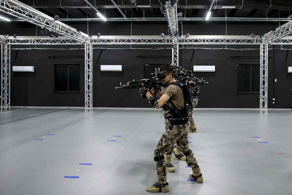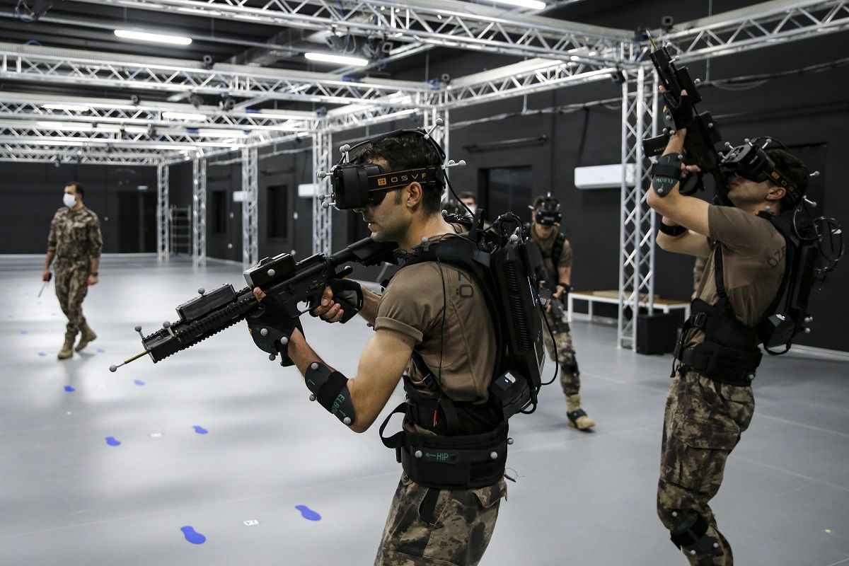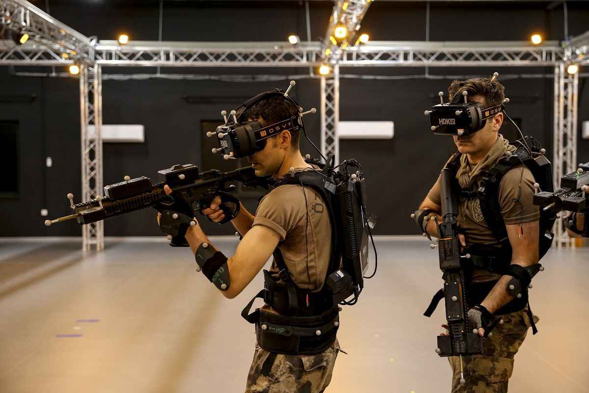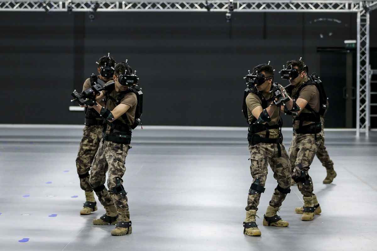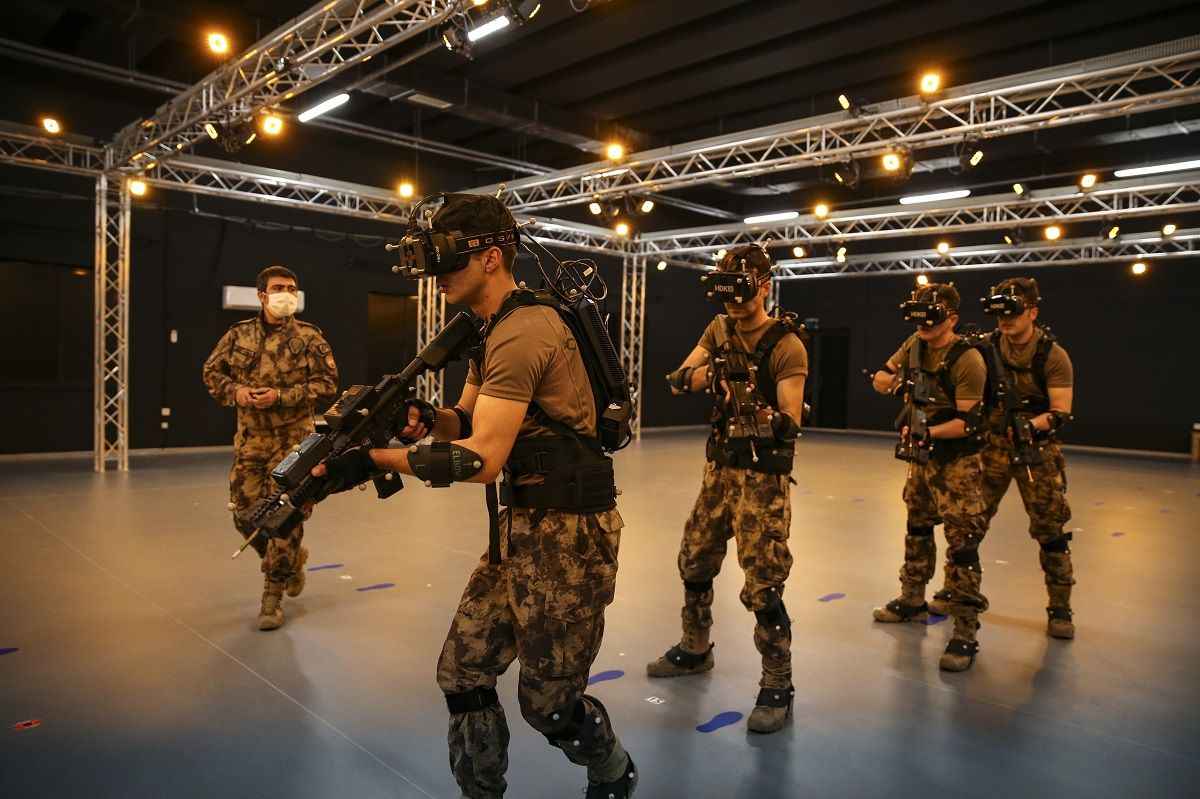 Yaklaşık 500 metrekarelik kapalı bir alanda bilgisayar kontrollü giyilebilir teknoloji kullanılan eğitim merkezinde, özel harekat polisleri basın mensupları için sanal operasyon gerçekleştirdi.