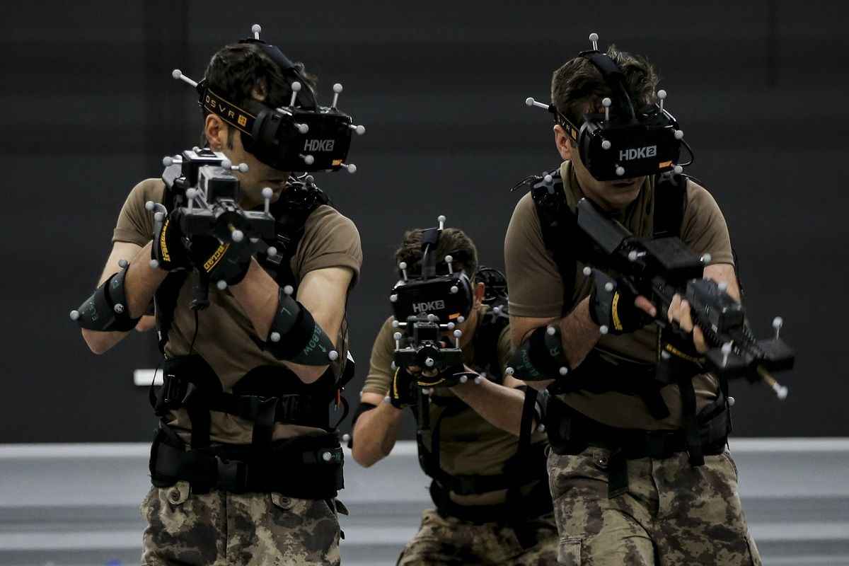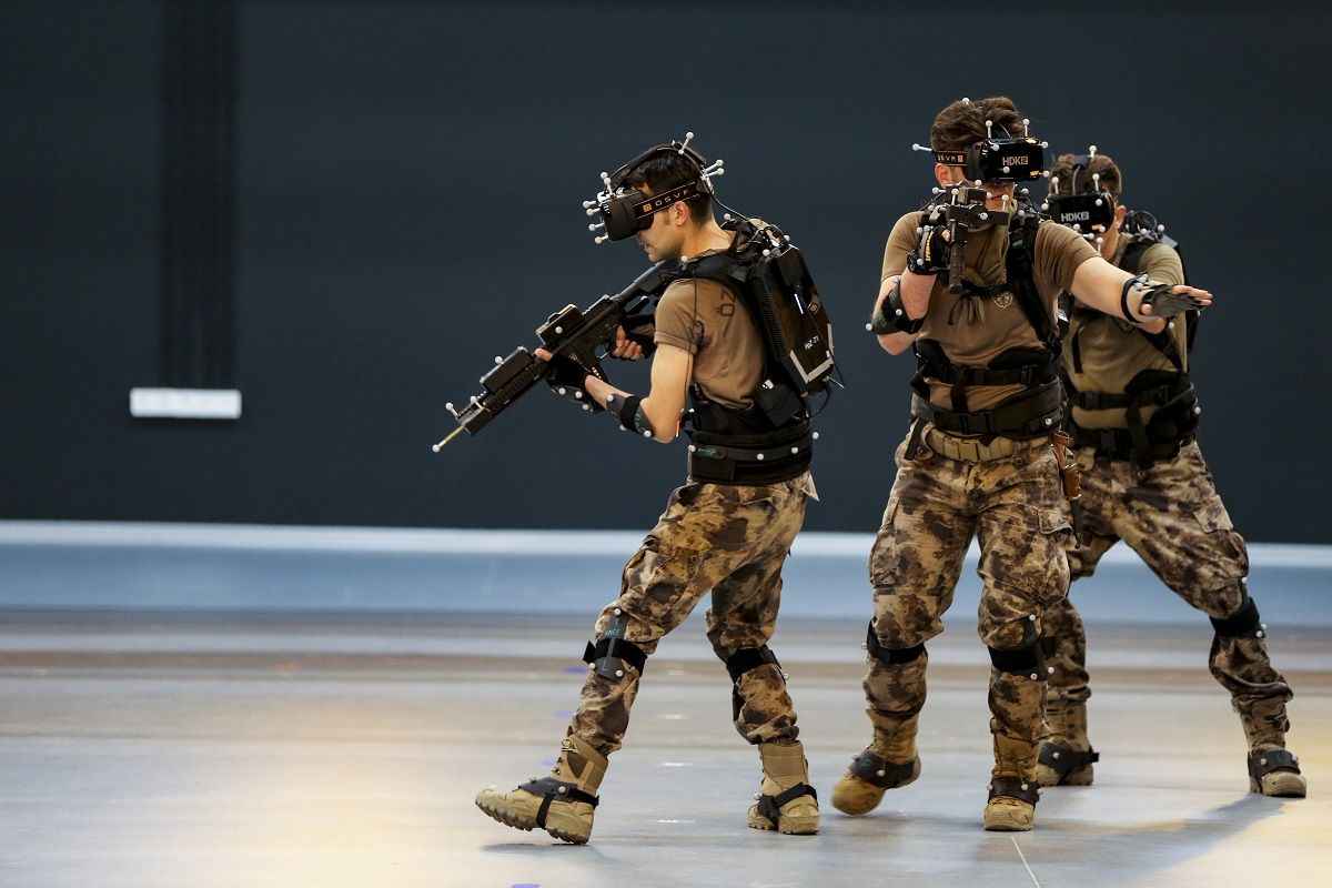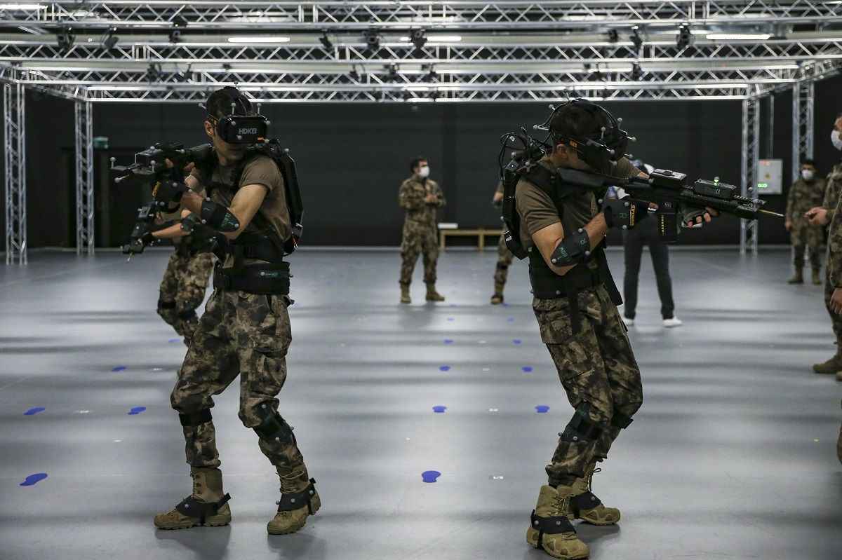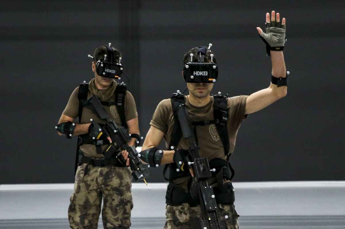 Yaklaşık 500 metrekarelik kapalı bir alanda bilgisayar kontrollü giyilebilir teknoloji kullanılan eğitim merkezinde, özel harekat polisleri basın mensupları için sanal operasyon gerçekleştirdi.