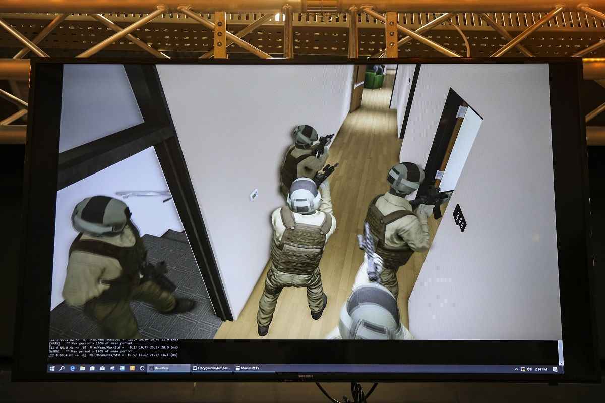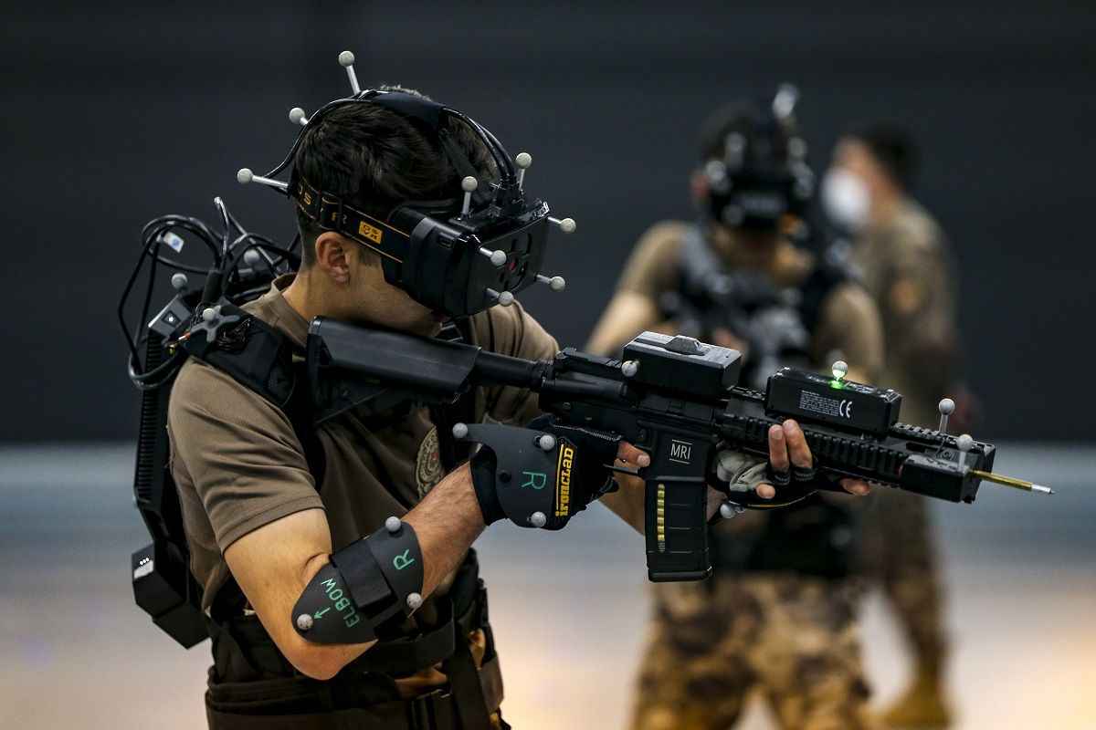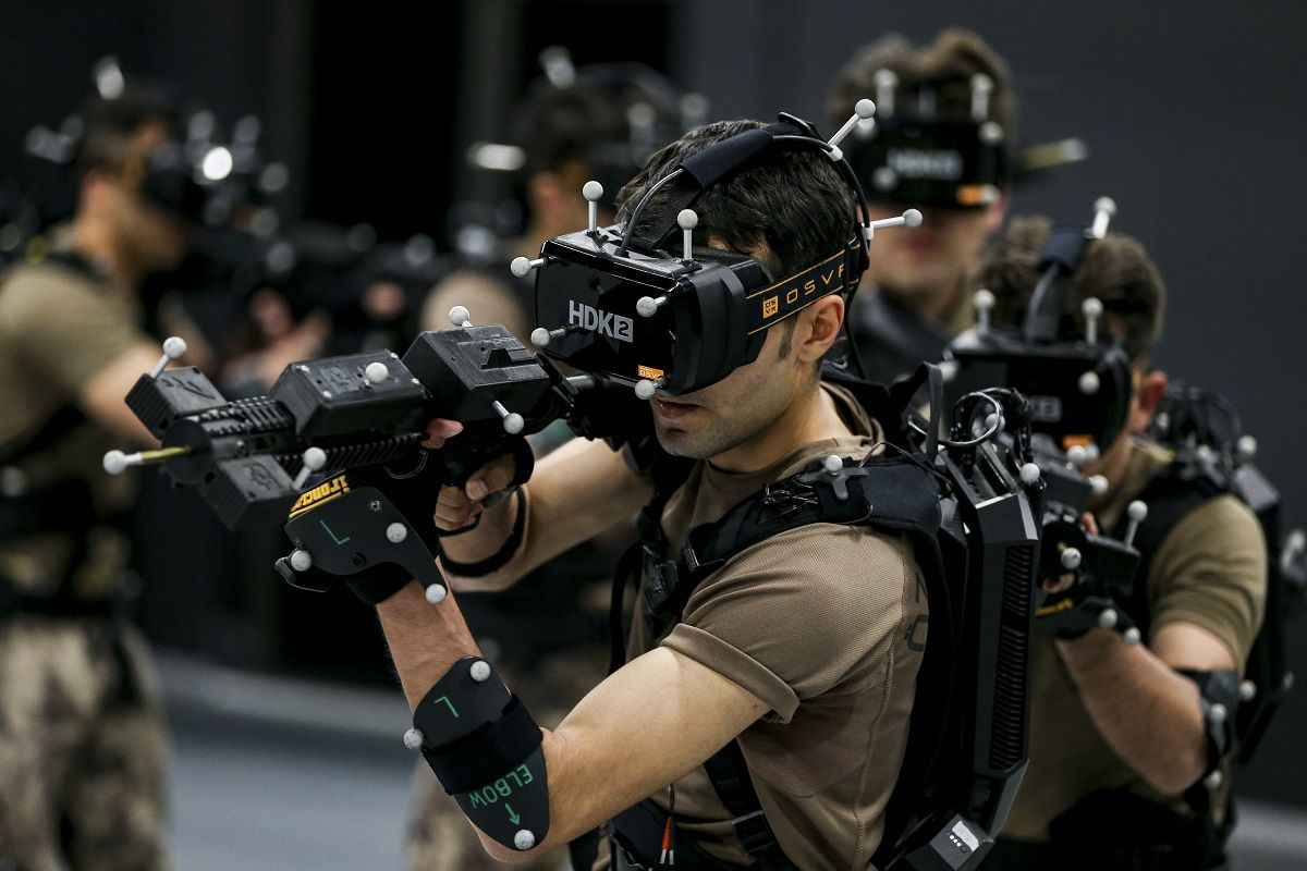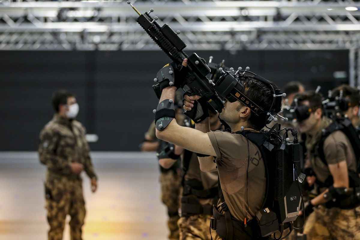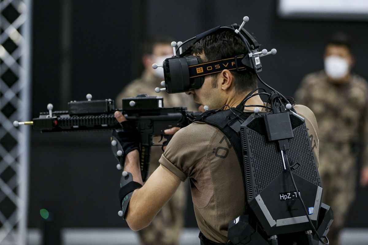 Yaklaşık 500 metrekarelik kapalı bir alanda bilgisayar kontrollü giyilebilir teknoloji kullanılan eğitim merkezinde, özel harekat polisleri basın mensupları için sanal operasyon gerçekleştirdi.