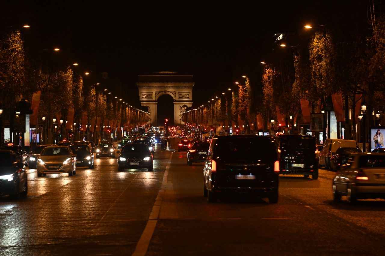 Fransa'nın başkenti Paris'te, mesai bitiminde ofis ve dükkanların ışıkları söndürülmeye başlıyor.