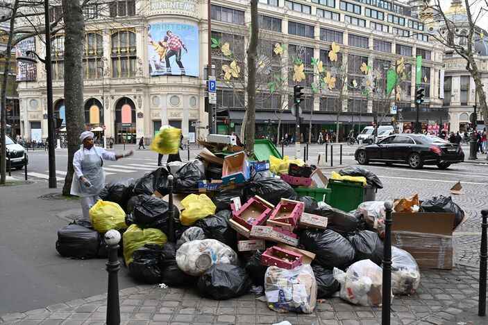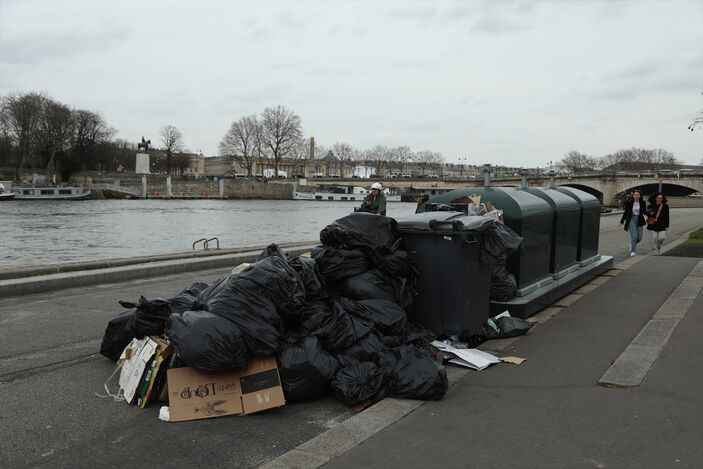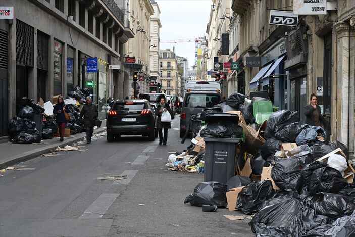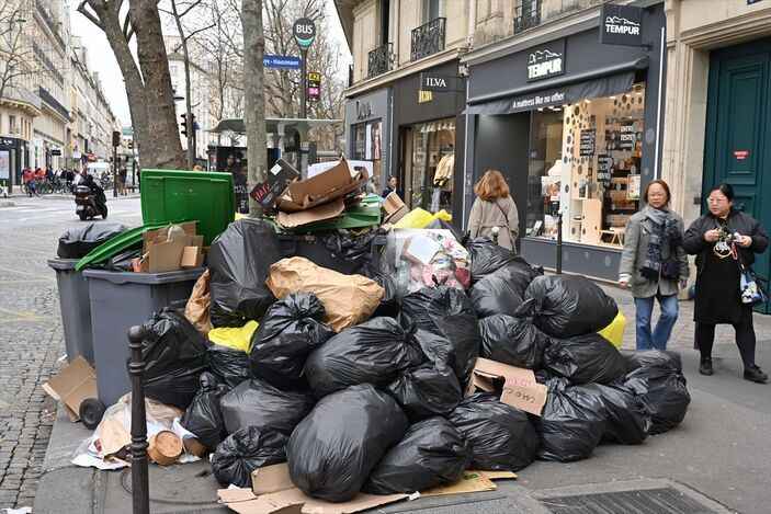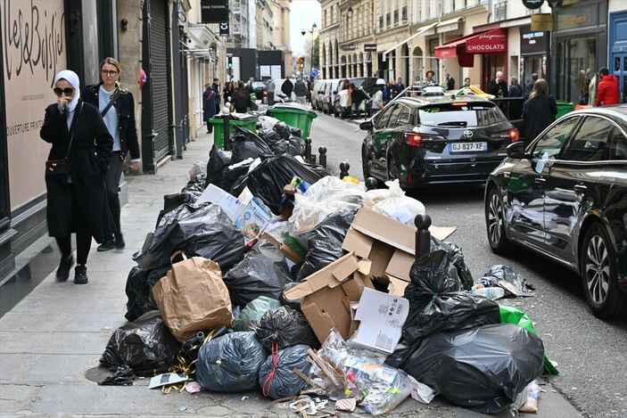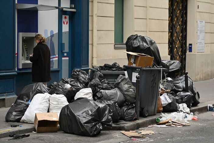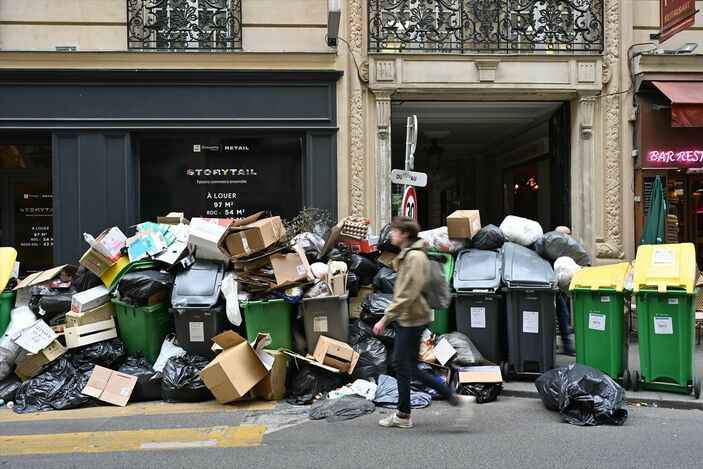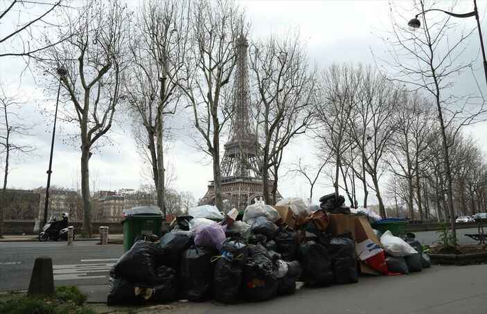 Hükümetin emeklilik yaşını kademeli olarak 62'den 64'e çıkarmayı hedeflediği ve ülke genelinde ocak ayından bu yana 8 kez kitlesel greve neden olan reforma karşı Paris'te temizlik işçileri, bu ay başında greve gitti.