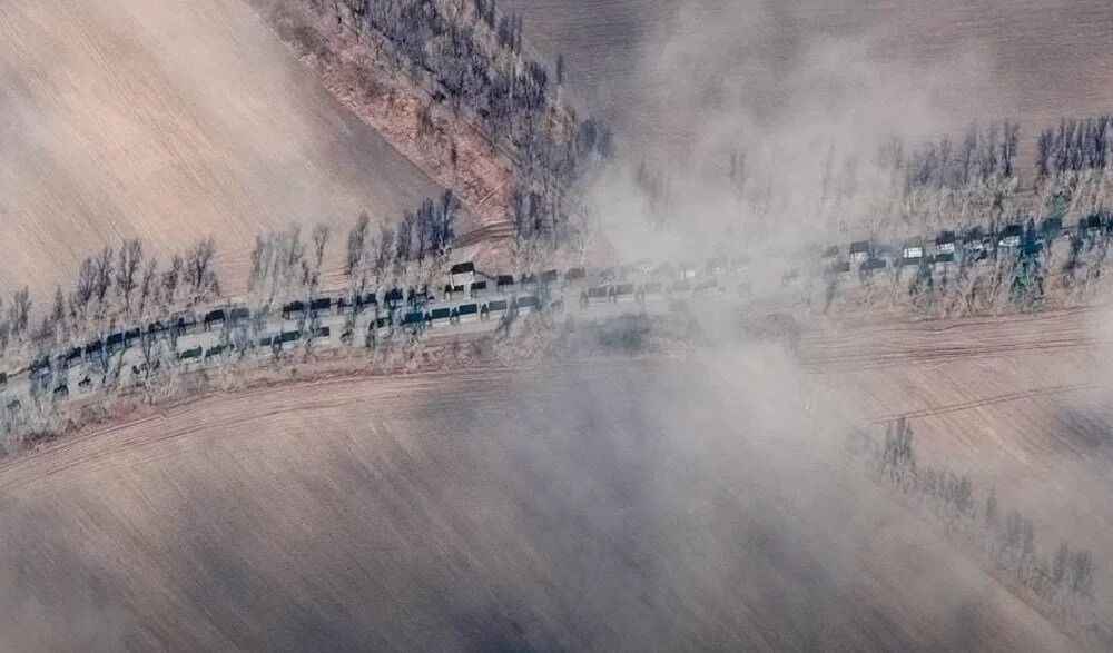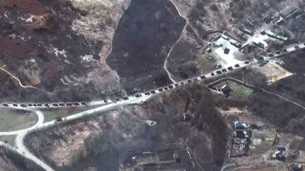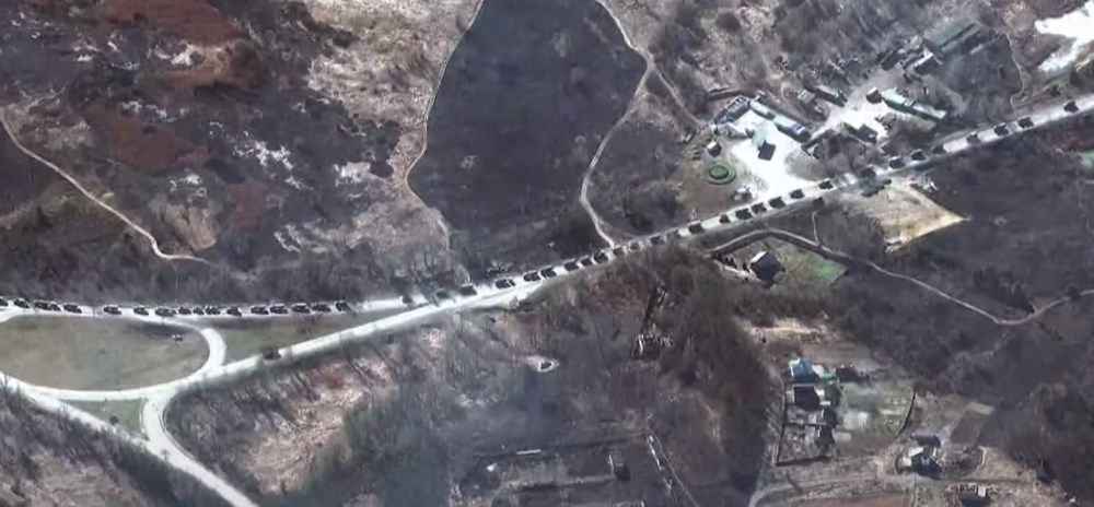 Konvoyun Kiev’e 43 km mesafedeki Antonov Hava Üssü'nden Ukrayna’nın Prisbyrsk kentinin kuzeyine kadar uzandığı tespit edildi.